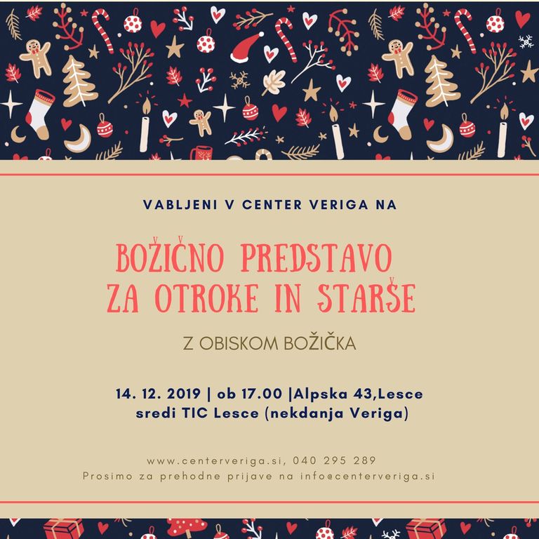 Vabljeni na božično predstavo članov Športnega in Kulturnega Center Veriga. Prireditev je ODPRTA ZA VSE, ne samo za člane Verige. ;)