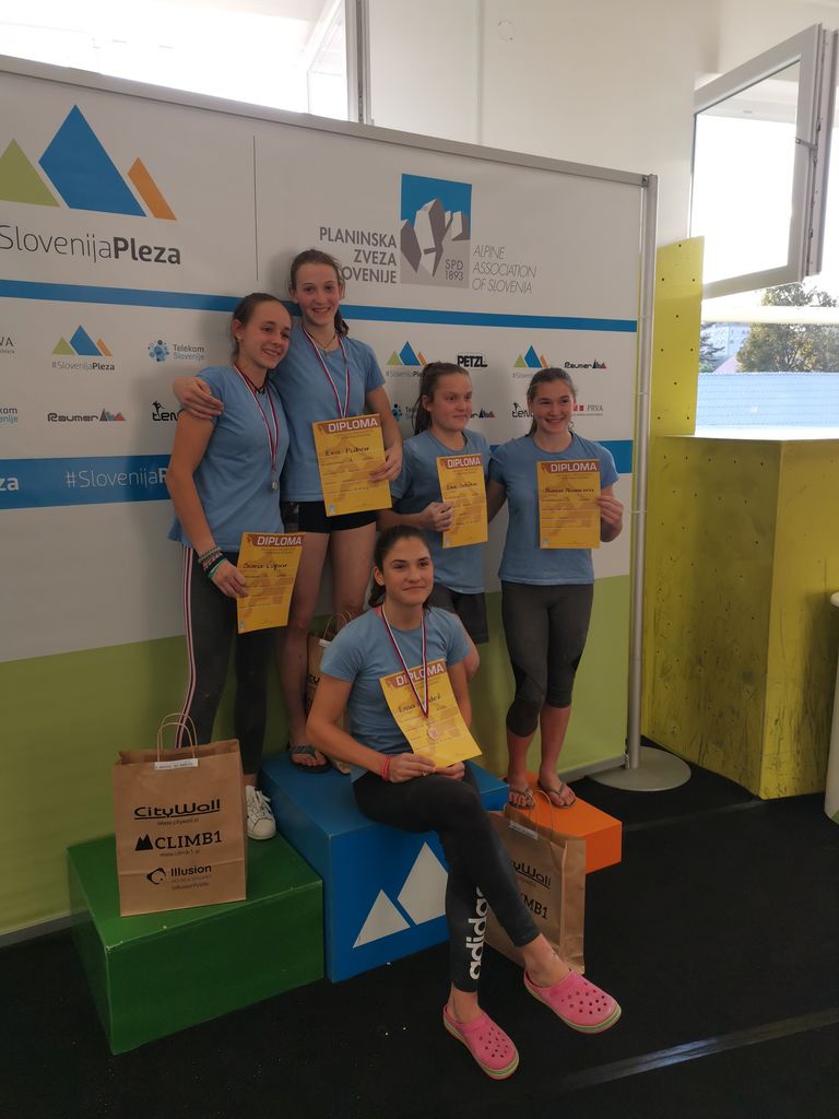 Pri mlajših deklicah je Lina Laharnar zasedla 12. mesto, preplezala je šest balvanov. Ela Glavač je zasedla 19. mesto s preplezanimi štirimi balvani.