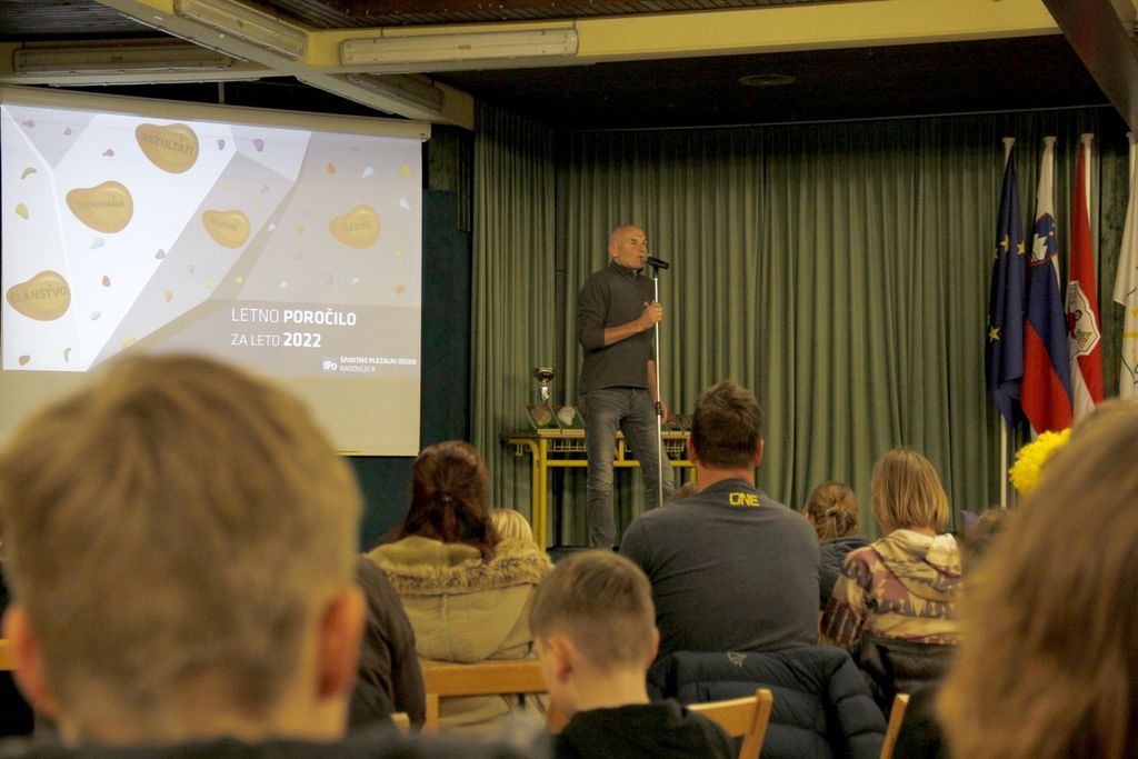 Po uvodnem pozdravu načelnika, smo si ogledali predstavitev sezone 2022. Tako kot sedaj že nekaj let je bila tudi sezona 2022 za naš odsek zelo uspešna. Za to smo zaslužni vsi: tekmovalci, trenerji, člani upravnega odbora in seveda starši. Poleg vseh teh pa bi bilo vse veliko težje, če ne bi imeli še drugih podpornikov. V prvi vrsti občino Radovljica, Planinsko društvo Radovljica in zadnja leta tudi Komunalo Radovljica. Z našim odličnim in strokovnim delom, ter odličnim medsebojnim sodelovanjem se lahko z velikim veseljem oziramo v prihodnost in prihodnje tekmovalne sezone.