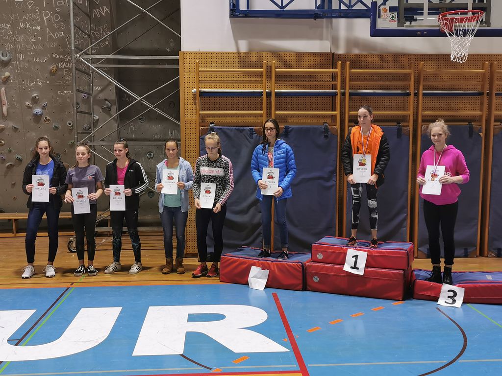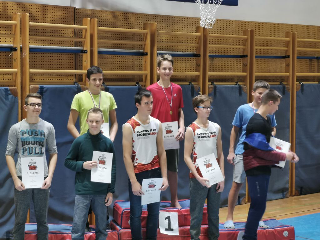 Pri starejših deklicah je bila najboljša Maja Arnež, ki je bila 3. Za zmago ji je zmanjkalo nekaj gibov v prvi smeri. 5. je bila Lina Laharnar, ki ji je do stopničk zmanjkalo samo pol giba. Klara Škutelj je bila 9., Pavla Ponikvar 13., Ela Glavač 16. Največ medalj so priplezali starejši dečki. Tokrat je zmagal Nejc Skumavec, Jan Ulčar je bil 3., Tanej Cerar Božič pa 4. Odločali so 3 težki gibi v zadnji plati druge smeri. Žiga Bertoncelj je bil 8., Ambrož Frelih pa 14.
