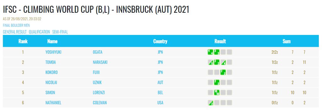 V balvanskem delu tekmovanja je svojo superiornost, prav tako z gladko zmago, prikazala Janja Garnbret. Pri moških pa je slavil Ogata Yoshiyuki.