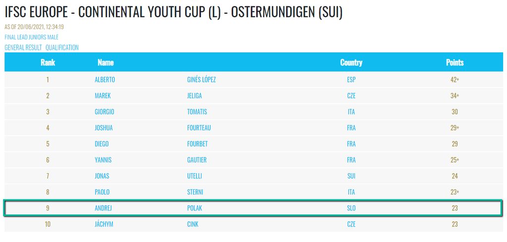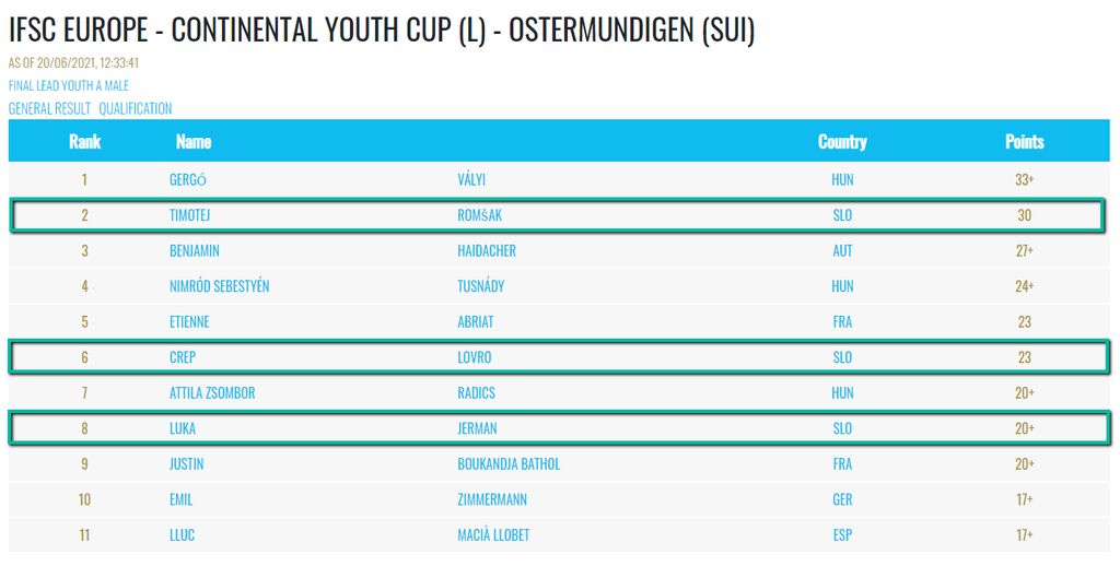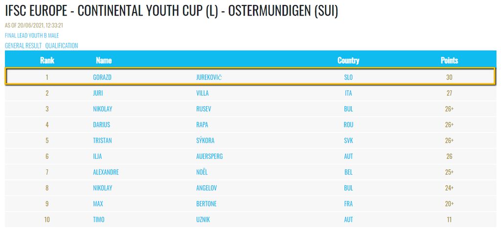 Naslednji dan so bila na sporedu finalna plezanja. Začela je skupina Youth B, kjer se je spet najbolje izkazal Gorazd Jurekovič, ki je zmagal! Bravo Gogi! Zala Mlakar Starič je bila odlična 2., Lana Gorič pa 8. Pri Youth A je najbolje plezal Timotej Romšak, ki je stopil na 2. stopničko. Lovro Črep je bil 6., Luka Jerman pa 8. Dekleta so tokrat plezala malo slabše kot smo jih navajeni. Najboljša je bila Eva Puhar 7., Sara Čopar 9. in Liza Novak 10. V skupini Juniors je bila Maja Majcen 8., Andrej Polak pa 9.