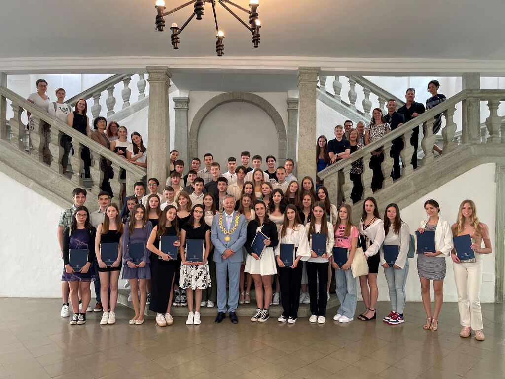 Župan Ciril Globočnik je odličnim osnovnošolcem danes čestital na sprejemu v Baročni dvorani Radovljiške graščine. Učencem je izročil priznanja ter knjižna darila, podelitev pa so z glasbenimi nastopi spremljali učenci Glasbene šole Radovljica.Prejemniki letošnjih priznanj za odlične osnovnošolke in osnovnošolce