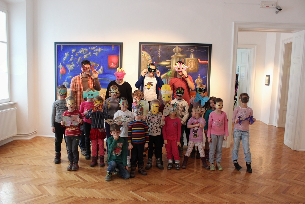 Ogledali si bomo razstavo Štefana Marflaka. Barve in oblike na njegovih slikah nam bodo navdih za ustvarjanje domišljijske maske.