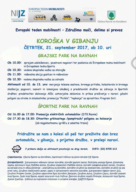 V primeru dežja se aktivnosti prestavijo na drug termin. INFO: (02) 8705 612