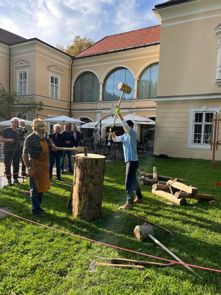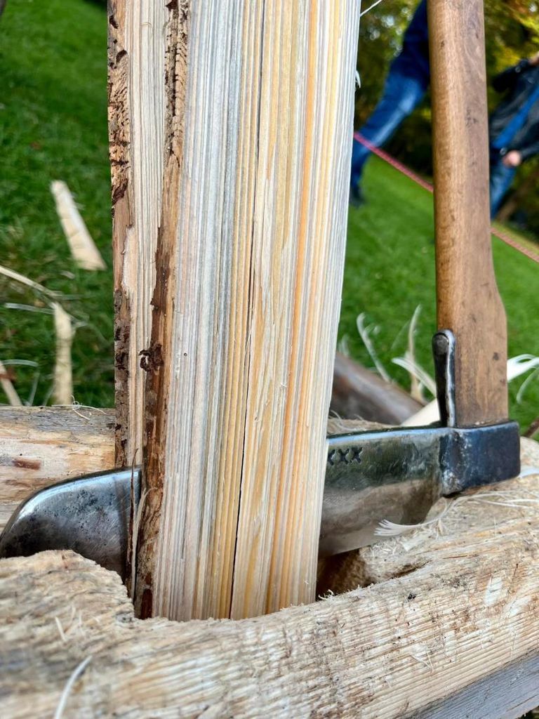 Ljudska univerza Ravne na Koroškem je v četrtek, 6. oktobra 2022, povabila na zanimivo in poučno Ljudsko uro »Od smreke do strehe« v Grajskem parku, kjer so predstavili nesnovno kulturno dediščino cepljenja smrekovih skodel (»šitlnov«). Na Koroškem še poznamo vrhunske mojstre te stare obrti, zato želimo, da ujamete del bogate slovenske kmečke dediščine. Znanje cepljenja »šitlnov« nam je predstavil Leopold Kos (»Prevrženov Polda«). Na delavnici smo lahko opazovali celoten proces izdelave smrekovih skodel, od »muzlna« (čoka) do »šitlna« (skodle).