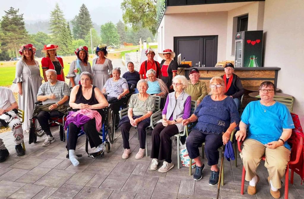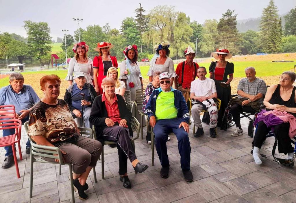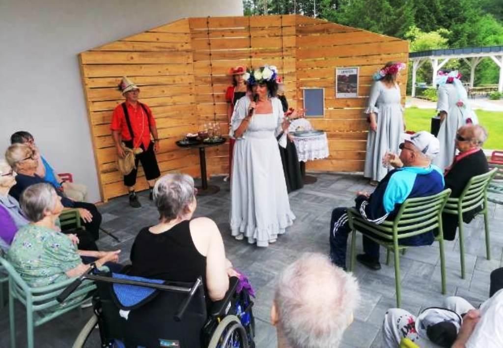 V teh dneh so jim za čudovito in prisrčno predstavitev bili najbolj hvaležni starostniki iz Doma starejših na Fari (Prevalje), saj jih je na Rimskem vrelcu pričakala pravljično oblečena skupina vse od vodnih vil, povodnega moža, gozdnega škrata in lepih grajskih dam do spletične, … vse pa je bilo povezano v zanimiv in pester program.