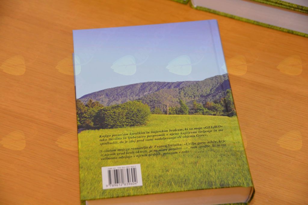 V Koroški osrednji knjižnici dr. Franca Sušnika na Ravnah na Koroškem je potekala predstavitev druge knjige domačinke Eme Golčer V objemu Gore. To je knjiga, v kateri avtorica sledi nadaljevanju Gelikine zgodbe in zgodbi njenih otrok med leti 1940 in 1970, predvsem v krajih pod Uršljo goro. Spet pred nami zrcali slika tedanjega časa in ljudi, ki jih avtorica opiše v tekočem in lepem jeziku, z občutkom za pravo mero in poudarek.