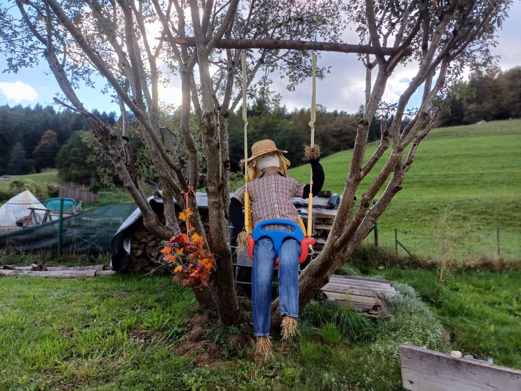 Jesenko, mlad fantič pa uživa na gugalnici, vi pa le postojte in si malo odpočijte.