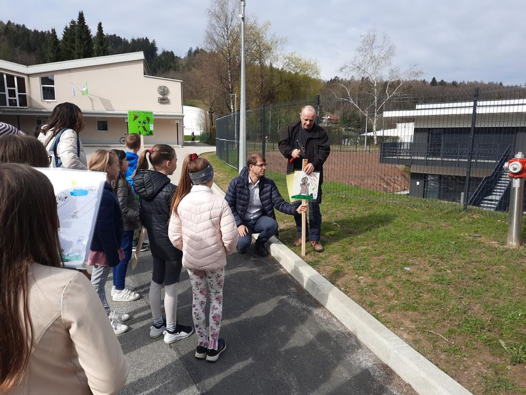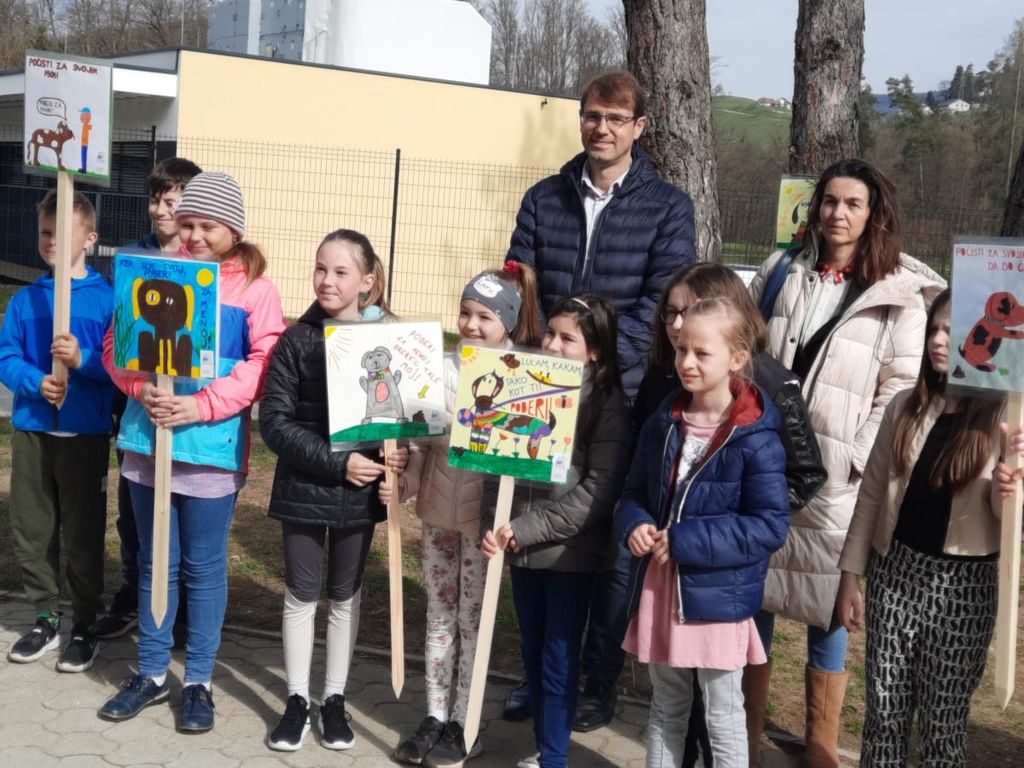V sredo, 12. aprila 2023, se je učenkam in učencem OŠ Juričevega Drejčka in OŠ Prežihovega Voranca pri postavljanju opozorilnih risbic pridružil župan dr. Tomaž Rožen.