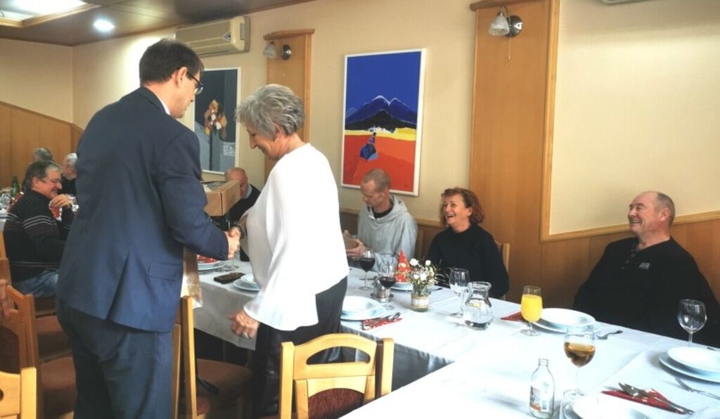 Župan Občine Ravne na Koroškem dr. Tomaž Rožen se je skupaj s predsednikom Društva upokojencev Ravne Petrom Prikeržnikom v tem decembrskem svečanem času zahvalil vsem sodelujočim v projektu, posebej še prostovoljnim šoferjem (prostoferjem) s skromnim darilom in povabilom na kosilo.