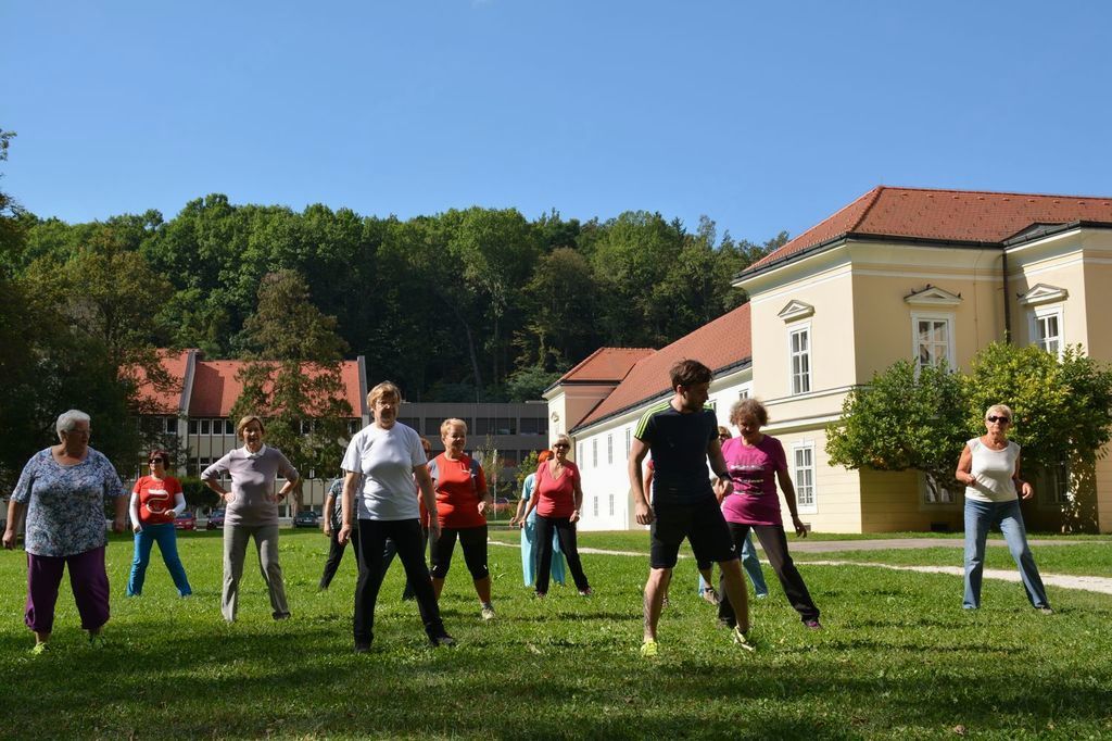 Člani Društva upokojencev Ravne na Koroškem so se v spremstvu policista skupaj z učenci 8. razreda OŠ Prežihovega Voranca podali na krajši pohod, potem pa so se s skupino iz Koroškega medgeneracijskega centra skupaj razmigali pod strokovnim vodstvom profesorja športne vzgoje. Poleg sonca nas je precej pogrela tudi vodena vadba pod vodstvom vaditeljice aerobike, kateri smo se v dveh terminih pridružili tudi organizatorji, sodelujoča društva in zaposleni na Upravni enoti Ravne. Prireditev smo zaključili s Testom hoje.