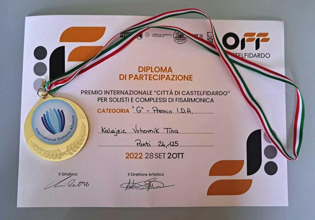 Letos se ga udeležila tudi Tina Vrhovnik Kalajžič, doma z Brdinj pri Ravnah na Koroškem. Mlada ravenska harmonikarica je med več kot 200 nastopajočimi dosegla odlično 1. mesto Junior World Music med diatoničnimi harmonikami (International diatonik Alliance). Tina je osvojila tudi 2. mesto med vsemi nastopajočimi instrumenti. Italijan z organettom ji je žal absolutno zmago festivala odščipnil za 0.14 točke. Je pa zato bila najbolje ocenjena med Slovenci.