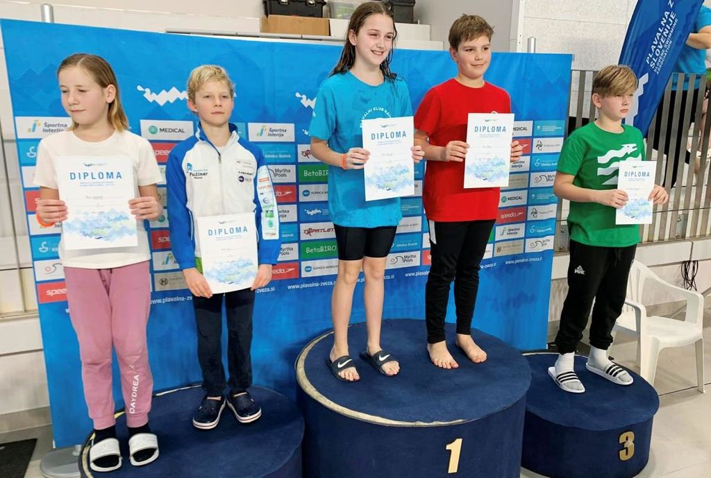 Tik pod stopničkami so bili tudi Gaja Vidrih (100 m hrbtno, 50 m delfin) in Tim Verlak (400 m prosto) med mlajšimi dečki/mlajšimi deklicami ter Zara Knez na 200 m prsno pri deklicah.