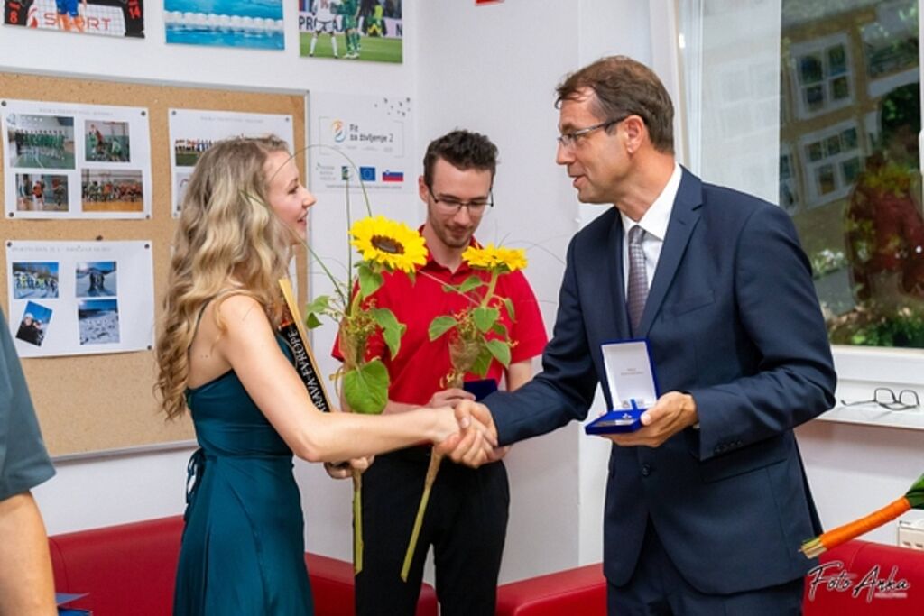 Prireditev ob podelitvi spričeval so sooblikovali maturantke in maturanti Jan, Lucija in zlata maturantka ter izjemna, večkrat nagrajena harmonikarka, Danaja.