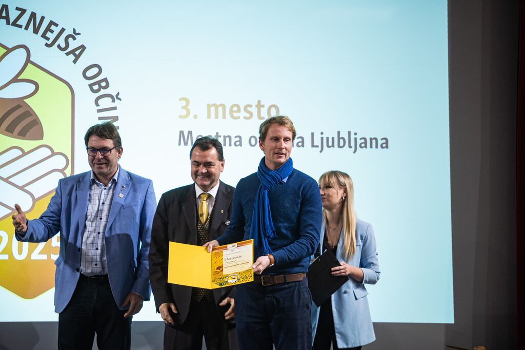 Priznanja sta podelila predsednik Čebelarske zveze Slovenije in Evropske čebelarske zveze Boštjan Noč in Rok Piletič in tako razglasila čebelam najprijaznejšo občino za leto 2025.