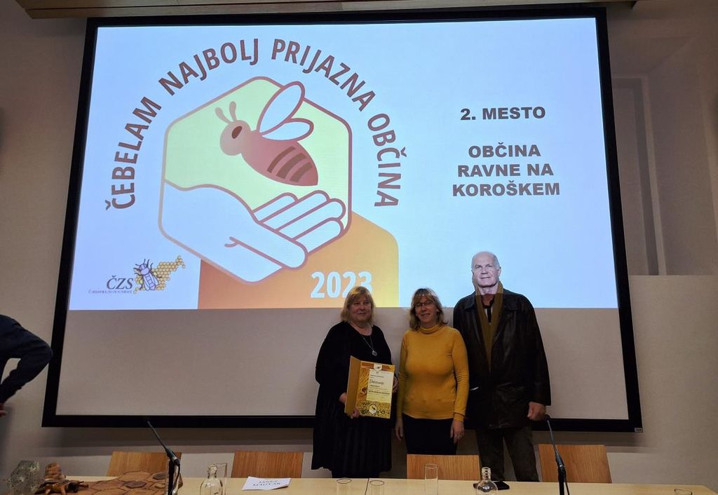 'Občini Ravne na Koroškem čestitam za drugo mesto na natečaju Čebelam najbolj prijazna občina!' sta podeljeno priznanje, na katerega smo upravičeno ponosni, z besedami pospremila predsednik Čebelarske zveze Slovenije - Boštjan Noč in Tina Žerovnik, vodja projekta Čebelam najbolj prijazna občina.