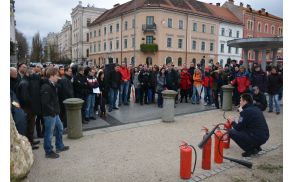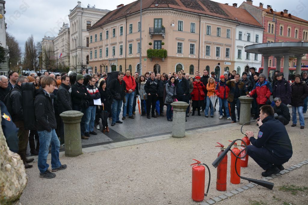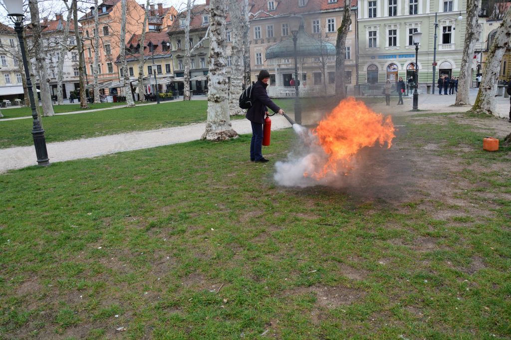 Kljub temu, da smo izobraževanje in gašenje izvedli na javnem kraju, na sredi Kongresnega trga, sredi Ljubljane, ni nikogar motilo. Tudi dragi instrumenti, ki so jih imeli nekateri glasbeniki ob sebi niso bili ovira za praktični preizkus.
