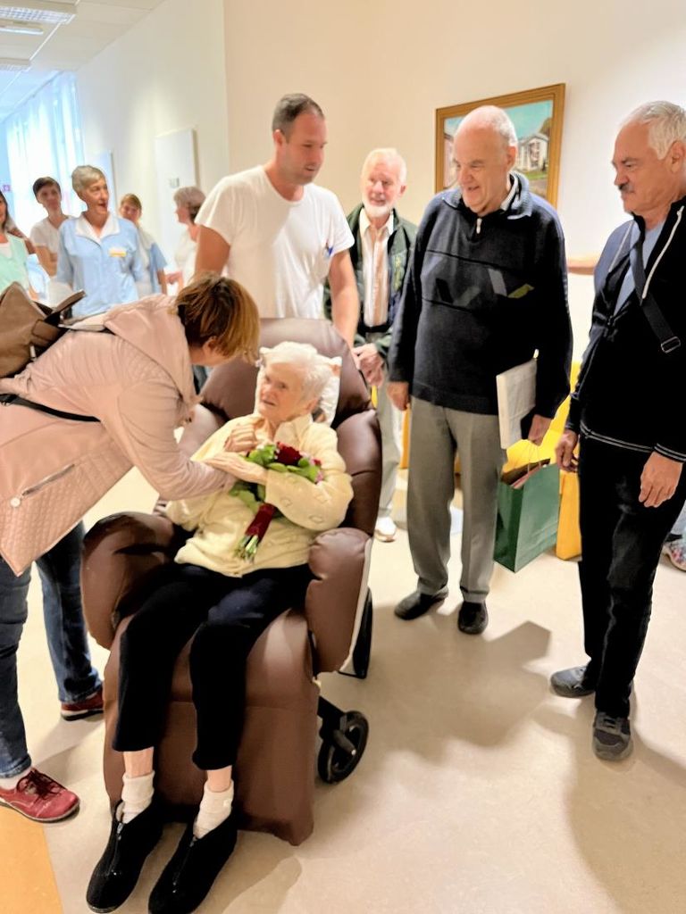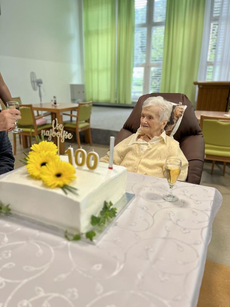 V Koroškem domu starostnikov Črneče je bila včeraj posebna priložnost za praznovanje častitljivega jubileja - stoletnice najstarejše občanke občine Ravne na Koroškem, ki živi v domu v Črnečah, Elizabete Jug. Ob tej izjemni prelomnici so se v domu ob slavljenki zbrali njen sin, zaposleni, na čelu z direktorico Katjo Pavlinič Šoba, nekdanji dolgoletni predsednik Društva upokojencev Ravne Jože Prednik, novi predsednik DU Ravne Avgust Jurc s soprogo Melito in predstavnica Občine Ravne na Koroškem Janja Širnik, da bi obeležili ta izjemen dosežek ter izkazali spoštovanje in čestitke najstarejši občanki živeči v KDS Črneče.