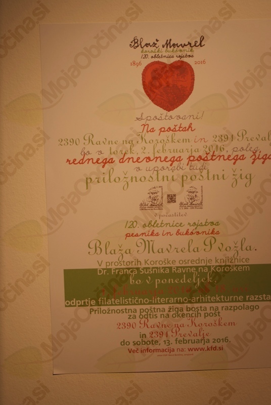 O Blažu Mavrelu in o knjigi Blaž Mavrel, koroški bukovnik sredi gozdnih samot, je veliko zanimivega povedala ena od avtoric Greta Jukič. Prisluhnili smo še avtorju filatelističnega sklopa razstave, arhitektu Borutu Bončina. Večer je s petjem Mavrelovih pesmi obogatila Cvetka Kramberger.