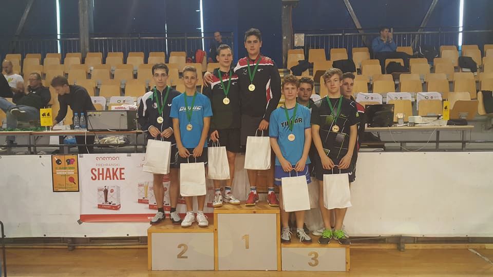 Pri mlajših kadetih ekipno je 1. mesto osvojil Aljaž Bobek iz Fužinarja skupaj s soigralcem iz Mute Blažem Lapajnetom.