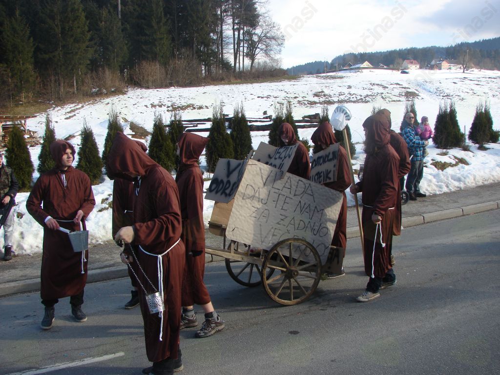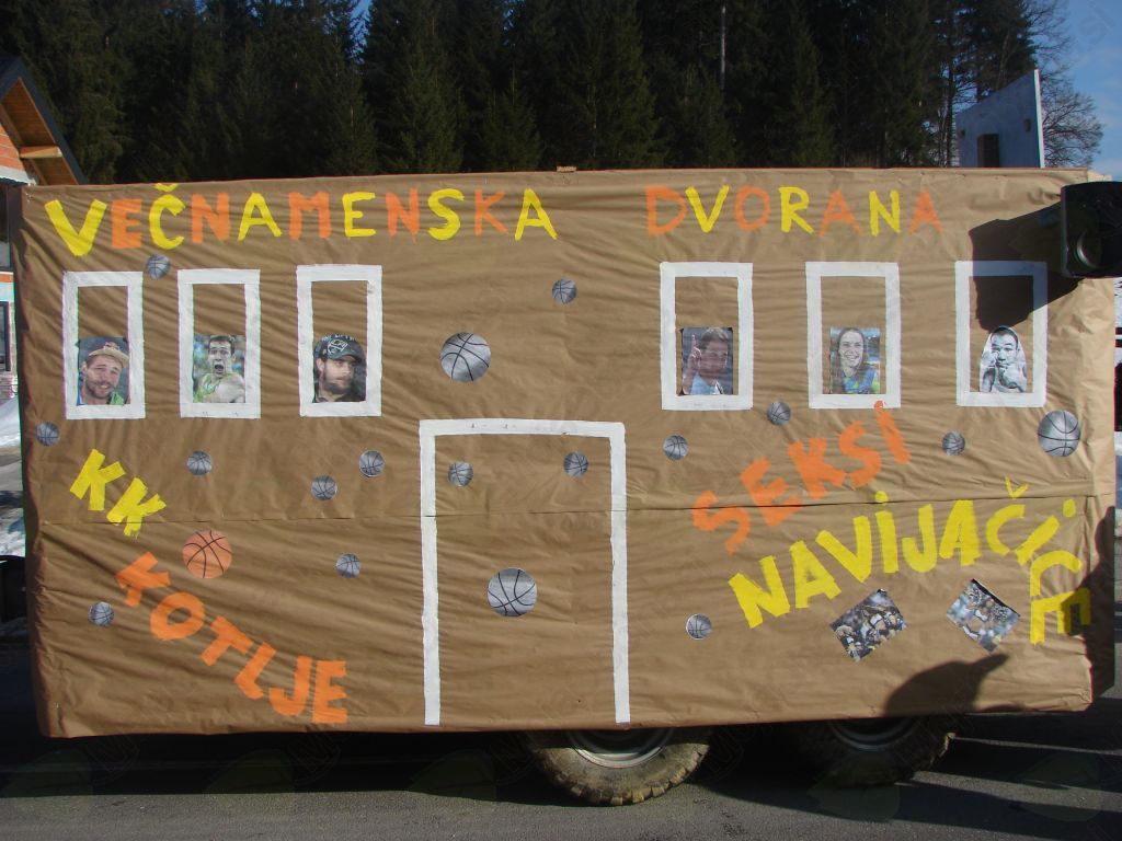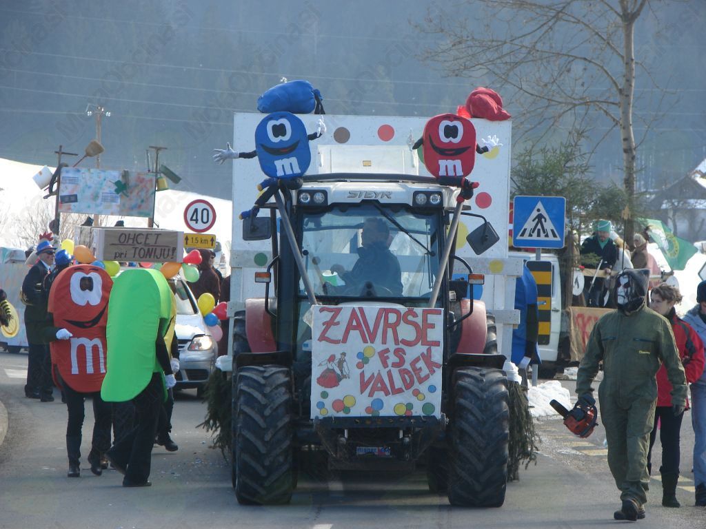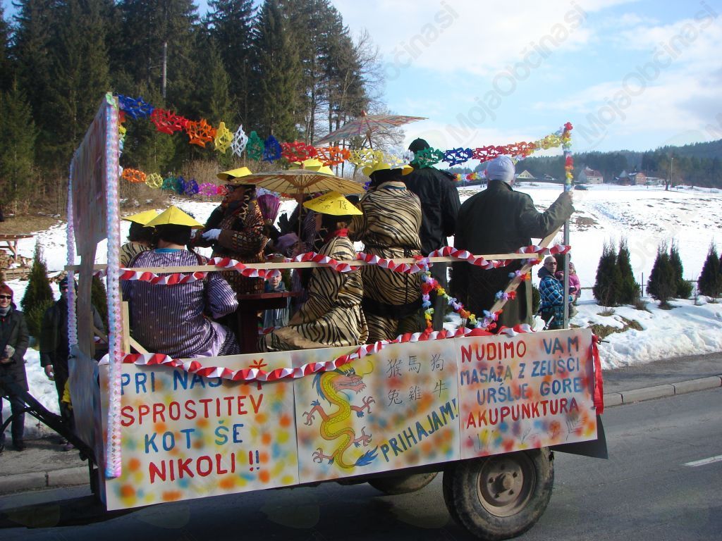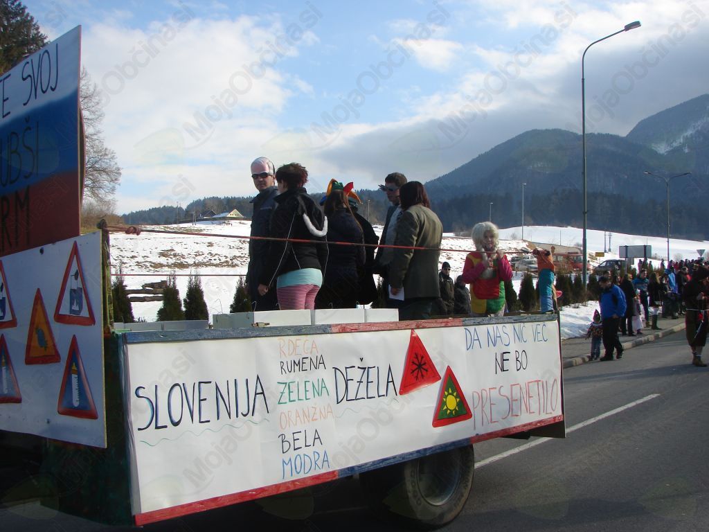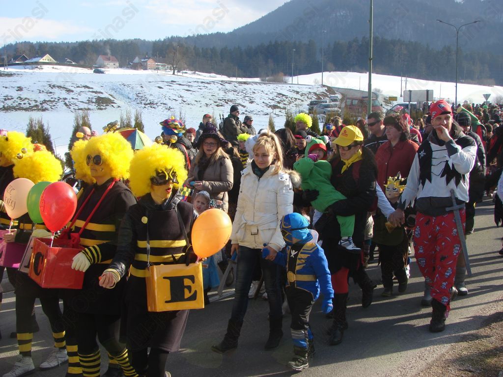 Izvedeli smo, da se lahko v kratkem pričakuje preporod Kotelj, saj dobijo novo večnamensko dvorano, kjer bo zelo »fiskulturno«. To so na povorki prikazali že skoraj pravi akrobati Športnega društva Stoja. Prav tako smo opazili, da imajo v Kotljah zelo pridne čebelice, ki so kljub letošnji slabi letini nekaj medu prinesle kar na karneval. Izpod Gore je prišel veliko množico ljudi pozdravit sam Povodni mož, da zime še ni konec so razglašali snežaki, na drugi strani pa so kurenti želeli pregnati njih in še zadnje ostanke zime. Skratka, zmeda nad zmedo! Predstavili so se še pajki, duhci in okostnjaki, pa Bedanc, Rožle in Brincelj. Opaziti je bilo še, da Rimski vrelec prihaja v roke Kitajk in Kitajcev, med povorko pa so se motovilile tudi dobro rejene miši in, hvala bogu, tudi voz odrešenja. Za veliko sladkega so poskrbeli bomboni M&M, še enkrat več pa smo videli, da se v Sloveniji na veliko »štrika«, najbolje v politiki! Tudi cela množica zapornikov se je pojavila na karnevalu, niso pa manjkali niti Rusi, tokrat kar s kazačokom in celotno konjenico.