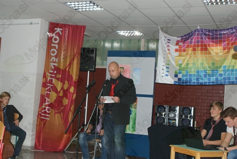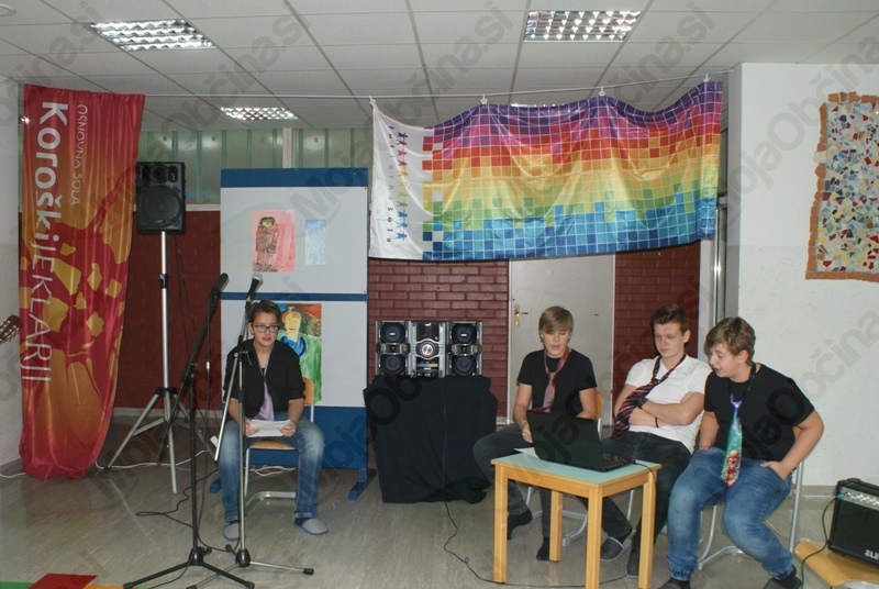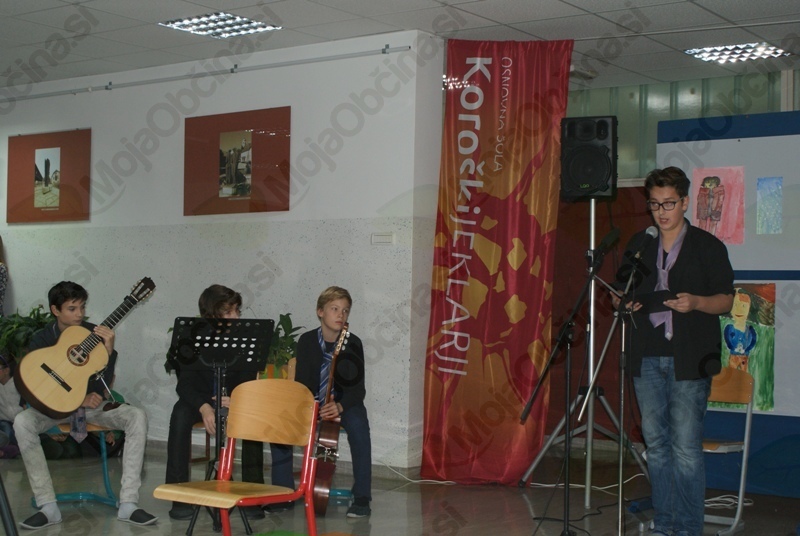Tokrat je pred nami razstava, ki je plod naše ideje in je predvsem namenjena poklonu umetniku, ki se je takorekoč zaljubil v Koroško ter pustil svoj pečat v naših krajih, nenazadnje na naši šoli kar z dvema svojima deloma. Eksplozijo znanja smo izbrali za naš znak…