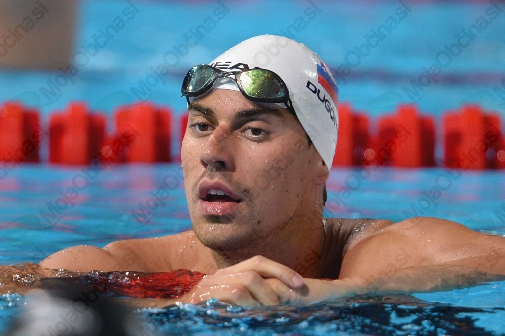 Že v soboto je Dugonjić z rekordom mitinga 27,71 zmagal tudi na pol krajši razdalji v prsnem slogu.
