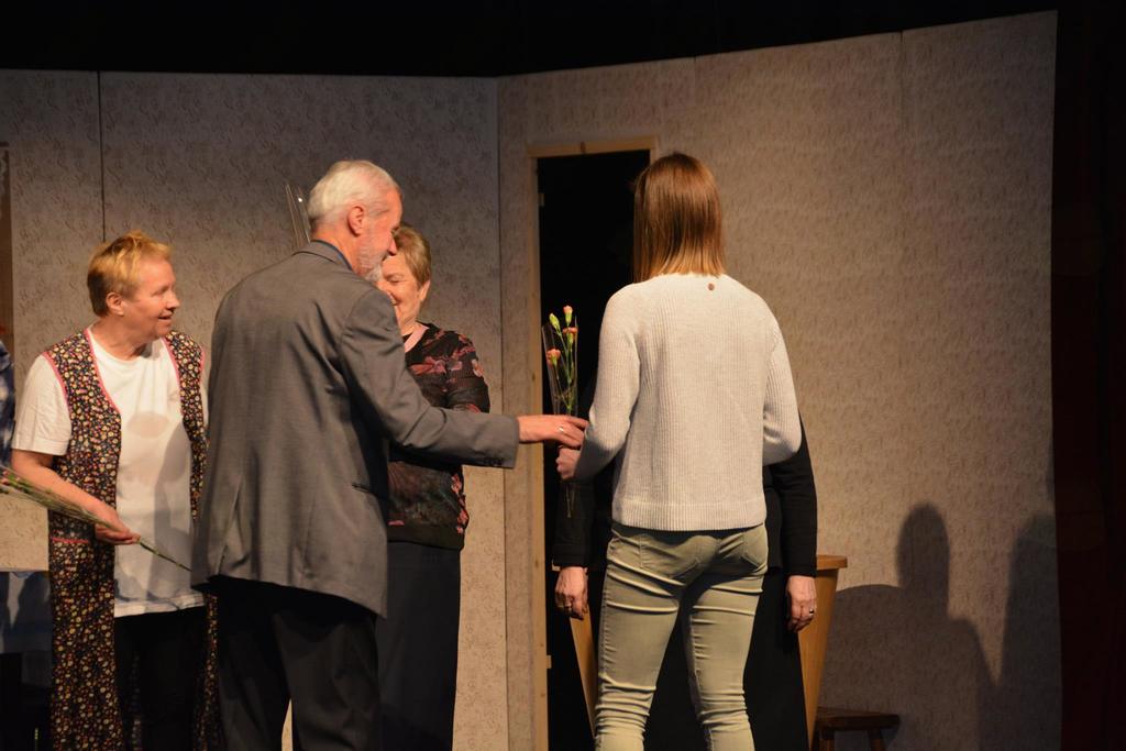 V prvi veseloigri so se predstavile štiri mlade igralke, ki so letos pristopile k gledališki skupini, in dobro odigrale vsaka svojo vlogo. To so Nika Jelen, Maruša Dolinšek, Marija Štriker in Nika Nabernik. V drugi veseloigri sta se predstavili Jožica Uršnik in Jožica Brežnjak, ki se je skupini pridružila tudi v tej sezoni. V tretji veseloigri pa sta se na odru predstavili že stalni igralki Lojzka Strmčnik ter Ivica Breznik in novi igralec Simon Planšak.
