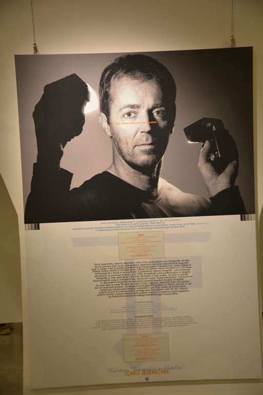 Fotograf Tomo Jeseničnik, samostojni kulturni ustvarjalec, je doslej sodeloval pri najrazličnejših filatelističnih projektih. Več kot dvajsetletno ustvarjanje je predstavljeno na stenah razstavišča. Tomo Jeseničnik, koroški fotografski avtodidakt, se je s svojim ustvarjalnim delom in predanim vseživljenjskim študijem fizičnega in teoretičnega sveta v dobrih dvajsetih letih kariere poklicnega fotografa trdno zasidral v slovenskem in svetovnem vizualnem spominu. Status samostojnega ustvarjalca na področju kulture je pridobil leta 1996 in doslej so bile njegove fotografije objavljene v številnih domačih in tujih revijah. Je avtor in soavtor številnih fotomonografij, knjig in publikacij tako doma kot v tujini; zanje je prejel številne domače in tuje nagrade. Po njegovih fotografskih predlogah so različni avtorji oblikovali preko trideset slovenskih in nekaj tujih rednih in priložnostnih poštnih znamk, več motivov ovitkov prvega dne, poštnih celin, osebnih poštnih znamk, motivov priložnostnih poštnih ovojnic in maksimum kart/razglednic Koroškega filatelističnega društva (KFD).