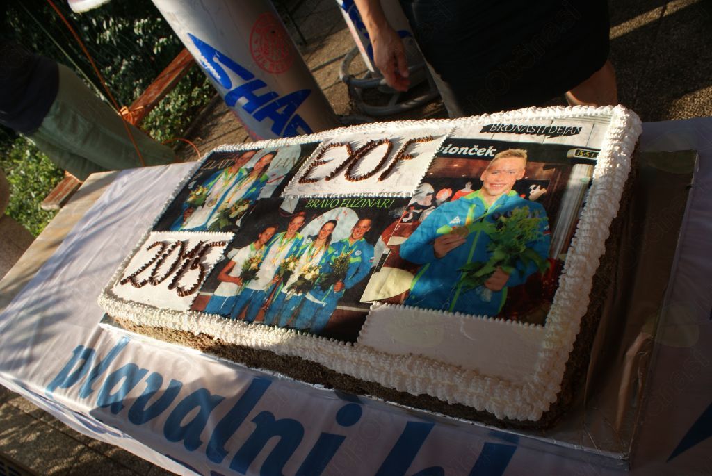 Razrezali so tudi veliko torto, s katero so se posladkali navijači plavalcev.