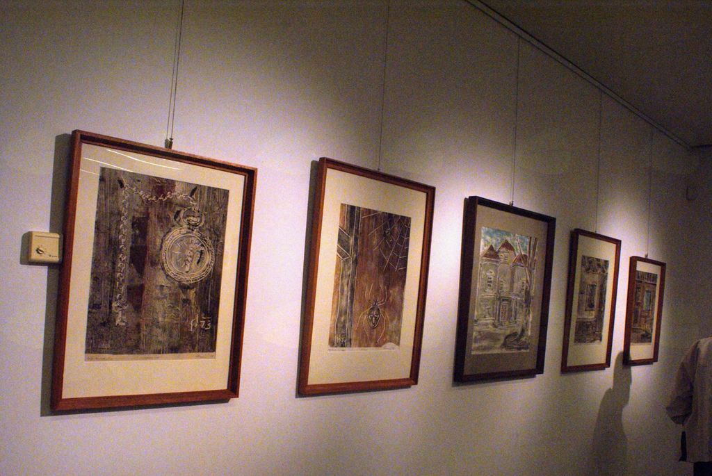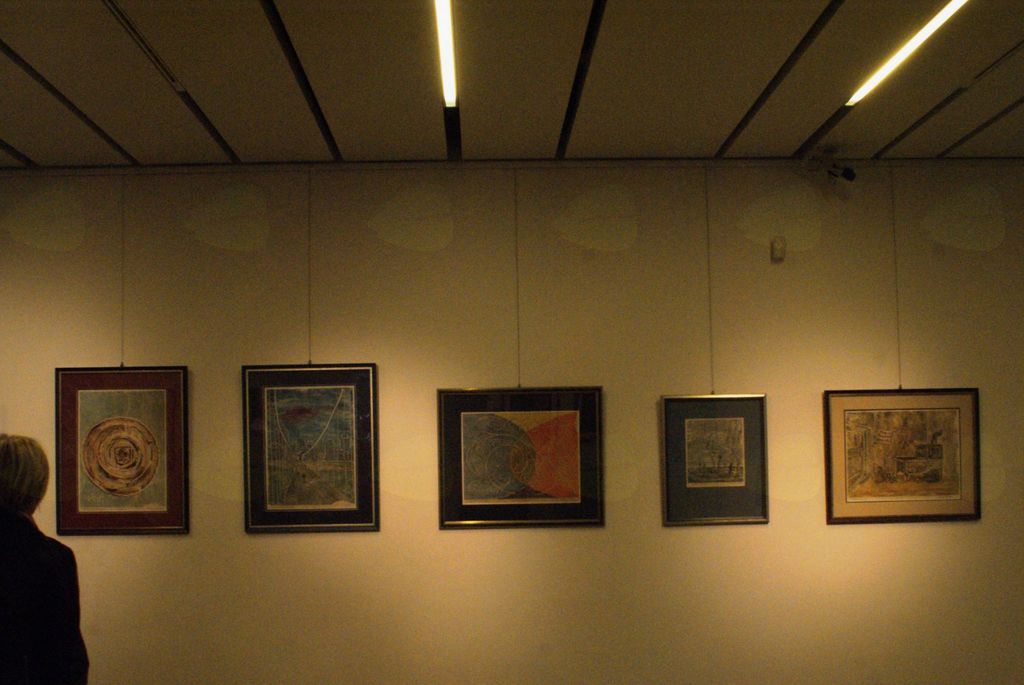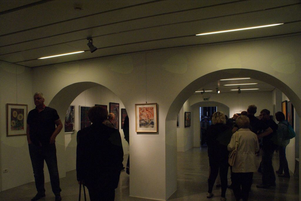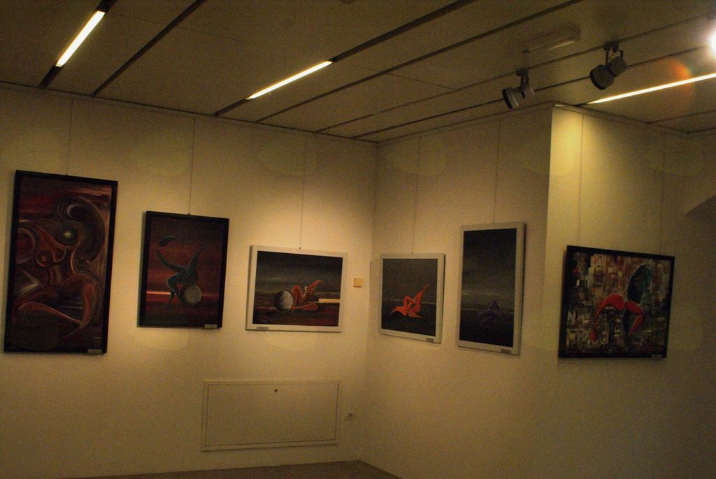 Darinko Plevnik razstavlja barvne monotipije, sin Mojmir pa akrile in digitalna dela. Monotipija (grško) - od 17. stoletja naprej znana grafična tehnika, ki dovoljuje le en sam odtis – izdelamo ga tako, da slikamo z oljnimi barvami na posebni bakreni plošči, plošči iz umetne smole ali na steklu, nato pa odtisnemo na papir, spominja na akvarel (Leksikon Cankarjeve založbe; Likovna umetnost). Kakor je slika v rezultatih predvidljiva (možne so vsakokratne korekture ali spremembe), pa monotipija ni. Videz motiva na podlagi v detajlih bistveno odstopa od odtisa. Ta enkratnost, neponovljivost je dodaten čar in kvaliteta monotipije.
