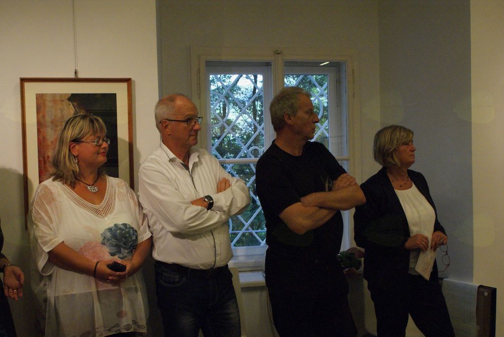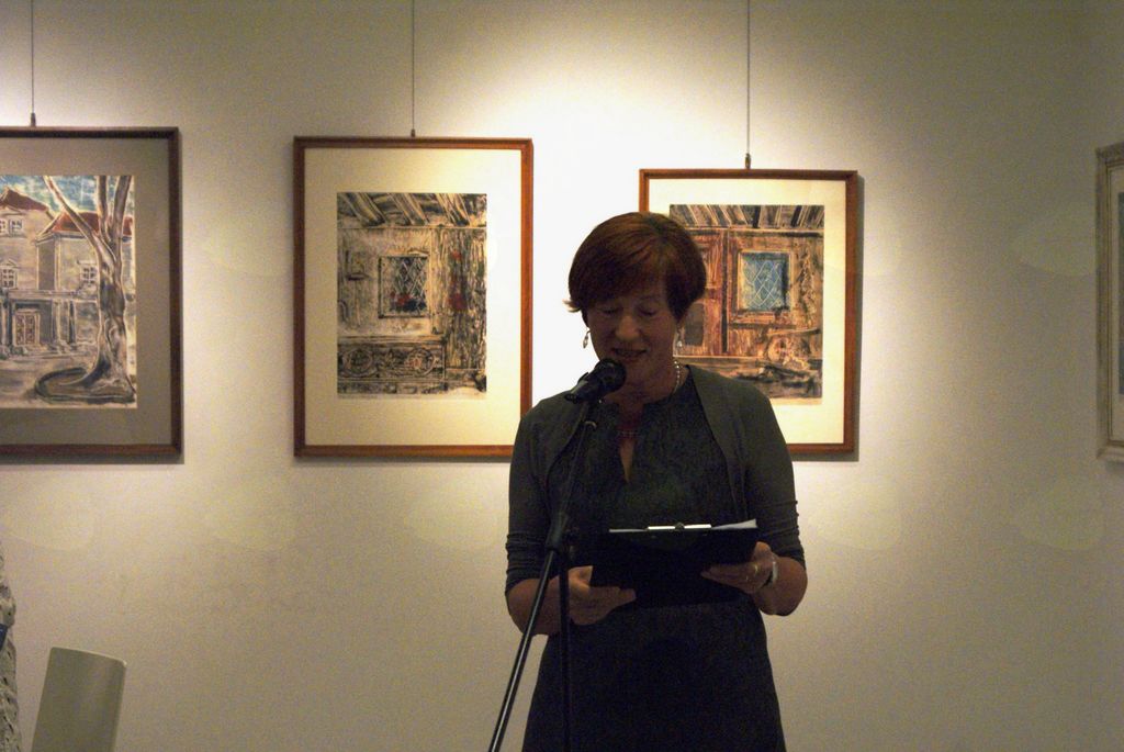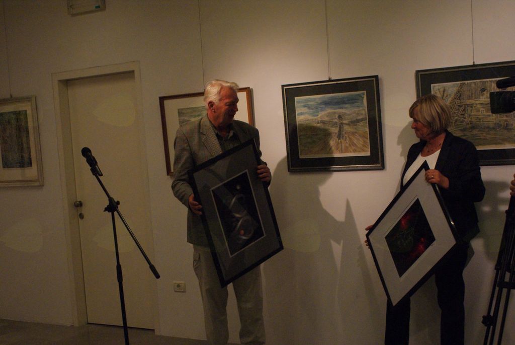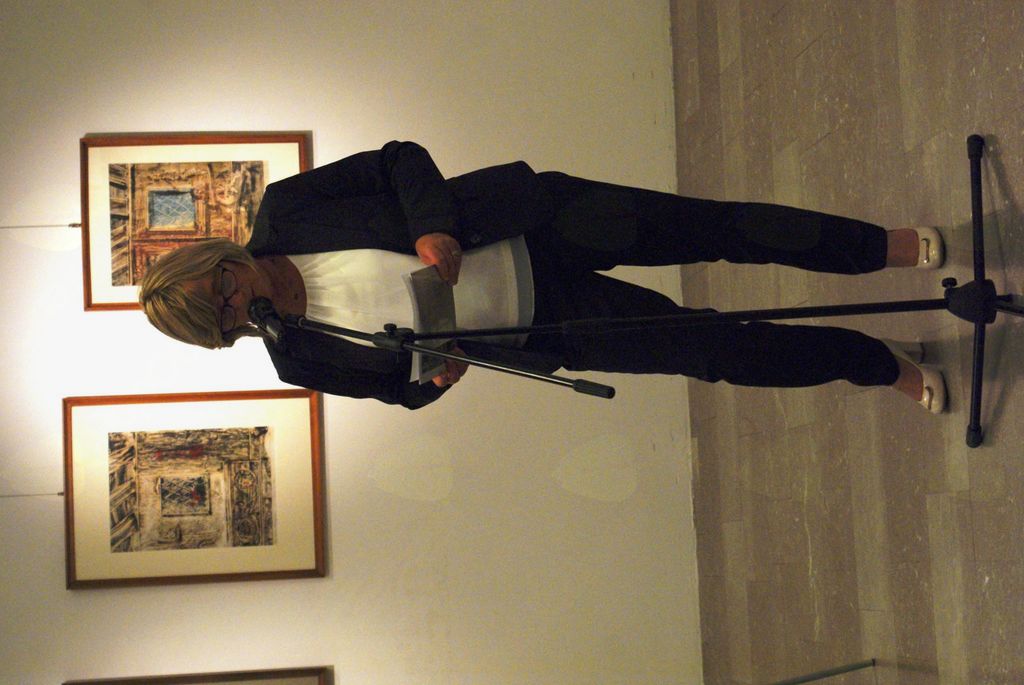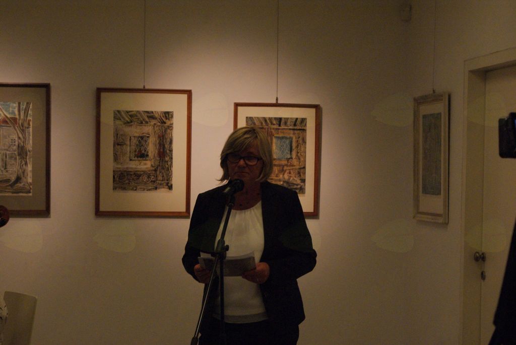 Prisluhnili smo direktorici Koroške osrednje knjižnice mag. Ireni oder. Spregovorila je o obeh slikarjih in na koncu tudi odprla razstavo skupaj s slikarjem Mojmirjem Mojčem Plevnikom.
