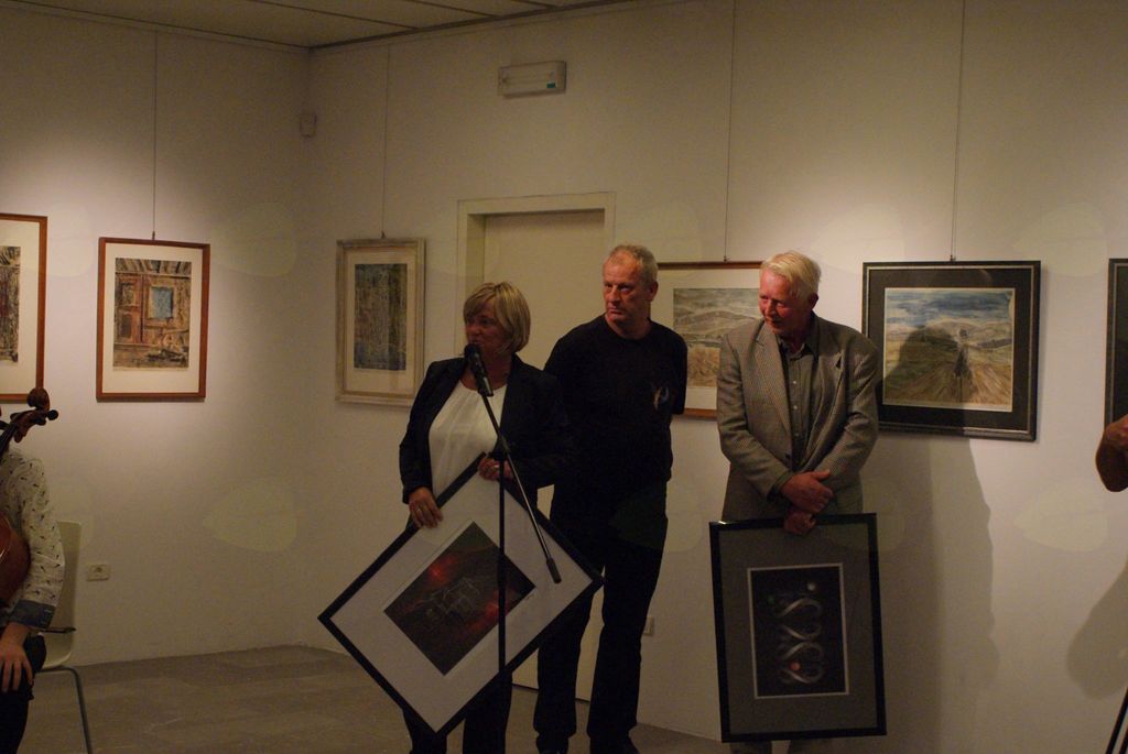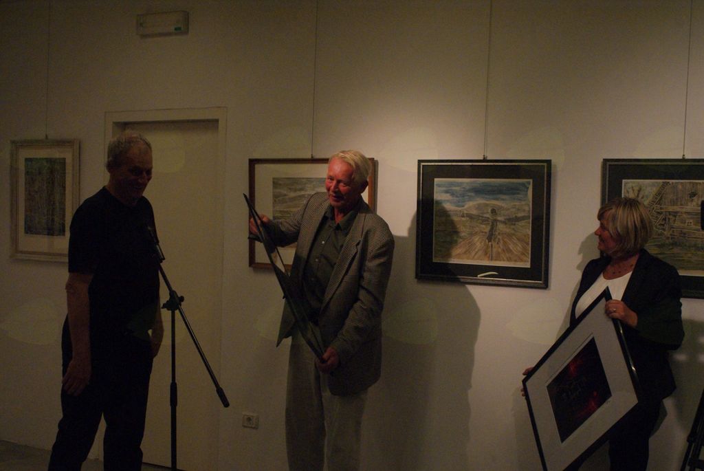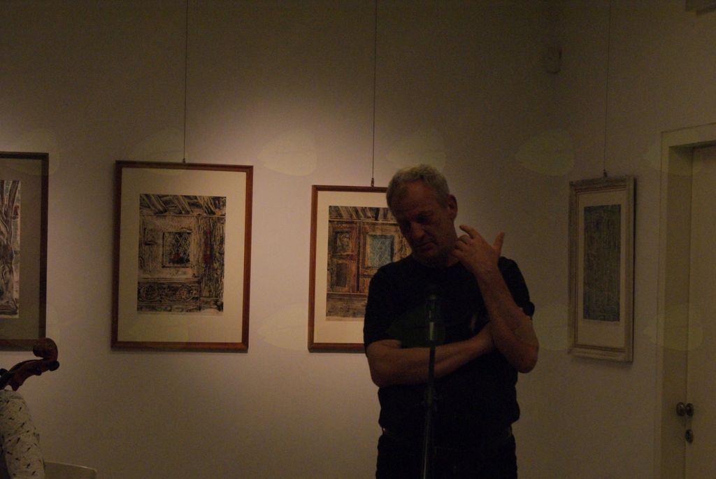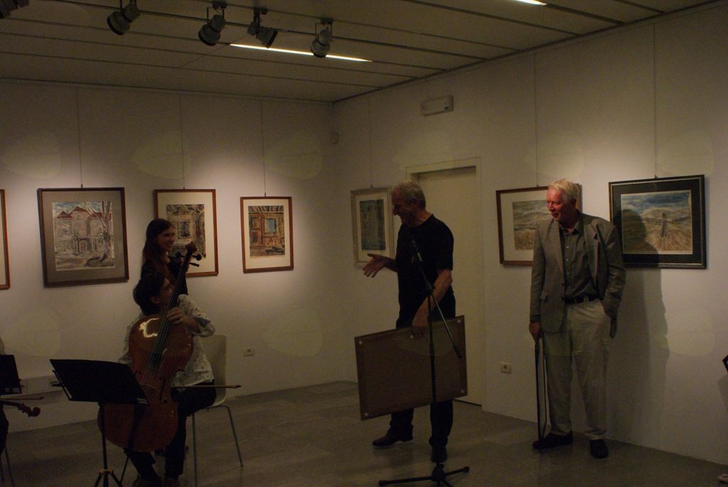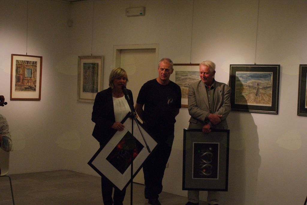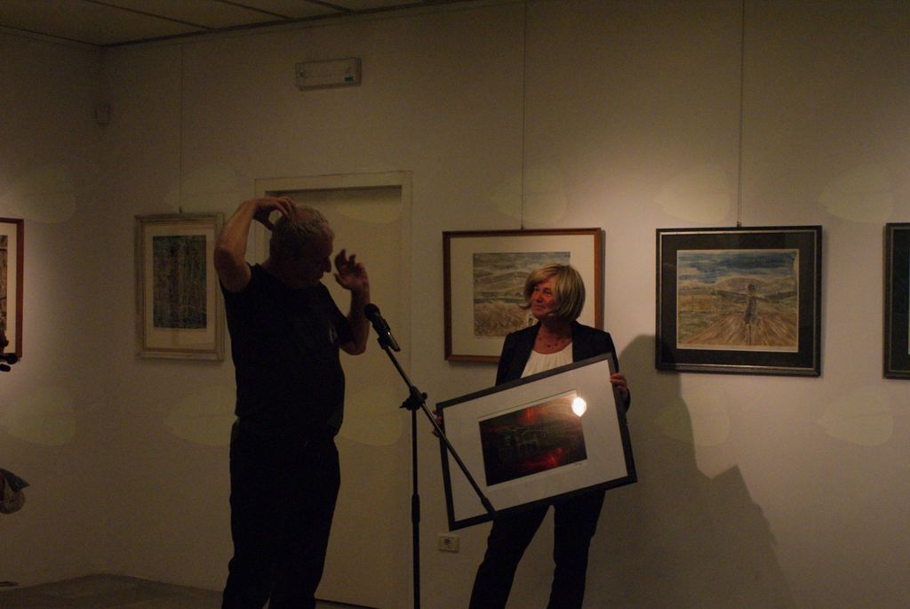 Prisluhnili smo direktorici Koroške osrednje knjižnice mag. Ireni oder. Spregovorila je o obeh slikarjih in na koncu tudi odprla razstavo skupaj s slikarjem Mojmirjem Mojčem Plevnikom.