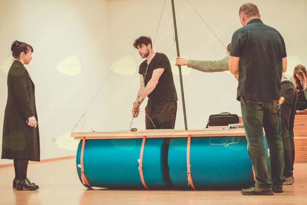 Na razstavi v Galeriji Ravne je Mark Požlep razstavil deset risb in knjigo s fotografijami in dnevniškimi zapisi, ki so nastali za časa njegovega bivanja na Otoku. Osrednji del postavitve bo zavzemala maketa splava v naravni velikosti, na katerem je umetnik živel. Iz njegovega spodnjega dela se širi zvok iz VHF postaje, prek katere je bil umetnik povezan s kopnim vseh pet dni prostovoljne samote.