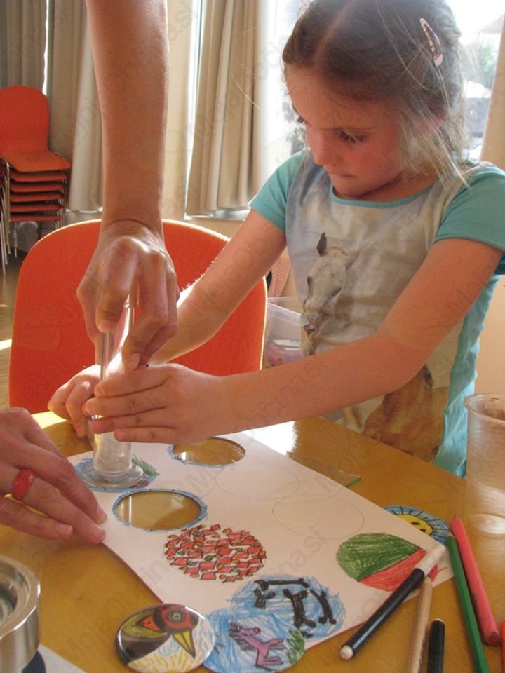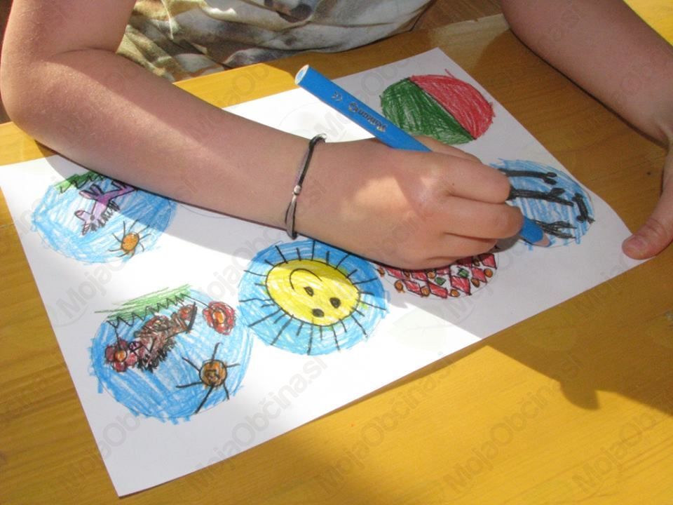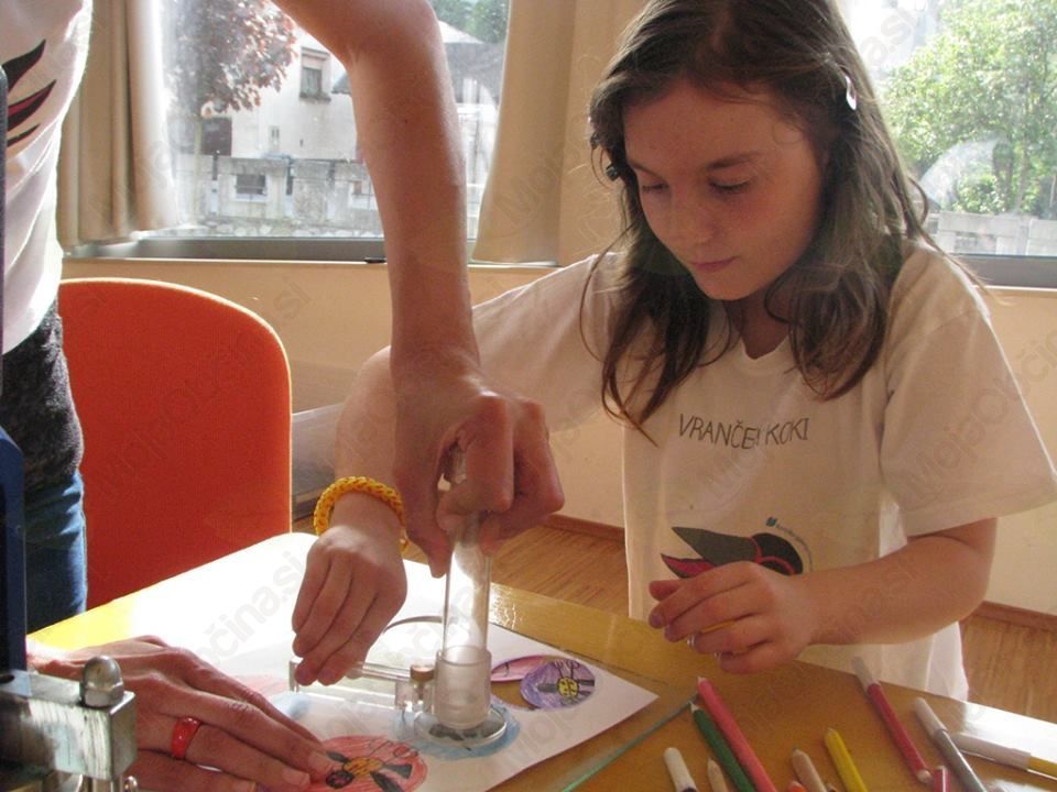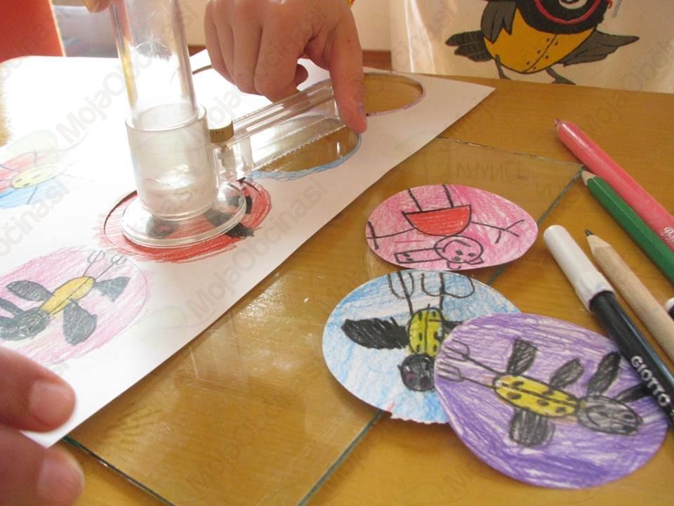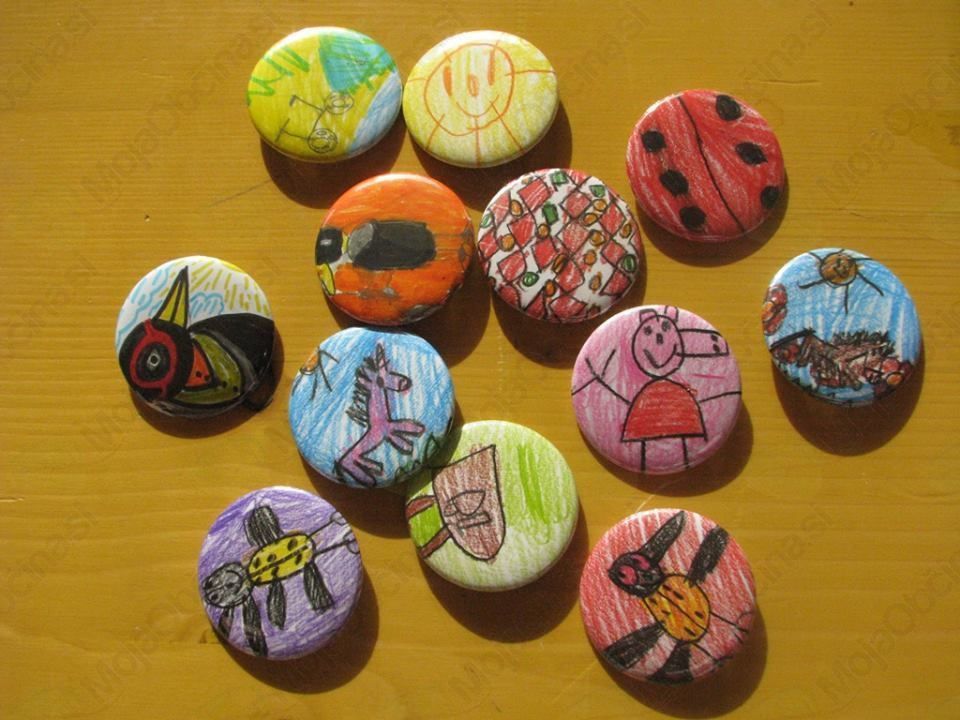 Tokrat so si otroci ogledali razstavo stalne galerijske zbirke avtorjev Kaje Brezočnik in Viktorja Senkova URE. Kasneje so si izbrali motiv in ga narisali oziramo prenesli v značko.