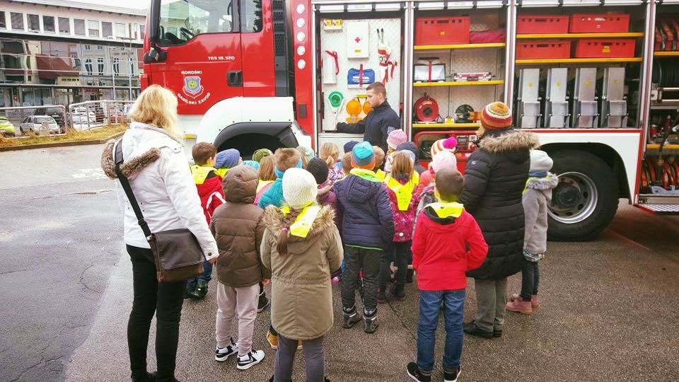 Koroški Gasilski Zavod so obiskali učenke in učenci 1. razreda Osnovne šole Prežihovega Voranca. Ravenski gasilci so jim razkazali in predstavili delovanje Gasilskega zavoda in njihovega poklica.