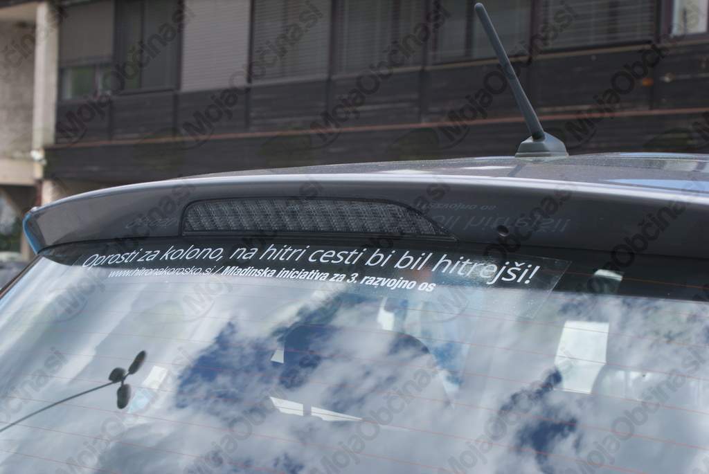 Nalepke so se lepile na zadke avtomobilov in so namenjene promociji zahtev Mladinske iniciative, da se mora v skladu z obljubo Vlade RS leta 2019 pričeti graditi hitra cesta na Koroško!