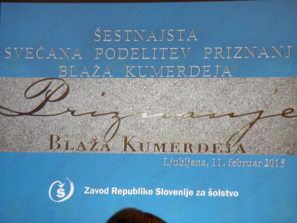 Na slovesnosti, ki je potekala 11. februarja 2015 je dr. Vinko Logaj, direktor Zavoda Republike Slovenije za šolstvo, v Viteški dvorani Muzeja novejše zgodovine Slovenije (Cekinov grad) v Ljubljani že šestnajstič podelil priznanja Blaža Kumerdeja za odlično partnerstvo pri razvoju in uvajanju novosti v vzgojno-izobraževalnih ustanovah, v sodelovanju z Zavodom za šolstvo. Zbrane je pozdravila dr. Andreja Barle Lakota, državna sekretarka na Ministrstvu za izobraževanje, znanost in šport. Priznanje Blaža Kumerdeja se podeljuje posameznikom, skupinam ali institucijam za dosežke pri uvajanju novosti v vzgojno-izobraževalnih ustanovah, za nove rešitve s področja razvoja kurikuluma, za ustvarjalne in inovativne metode učenja ter poučevanja, za prispevek inovativnih učnih sredstev in pripomočkov; za izvajanje izobraževanj, javnih prireditev in podobnih dejavnosti.