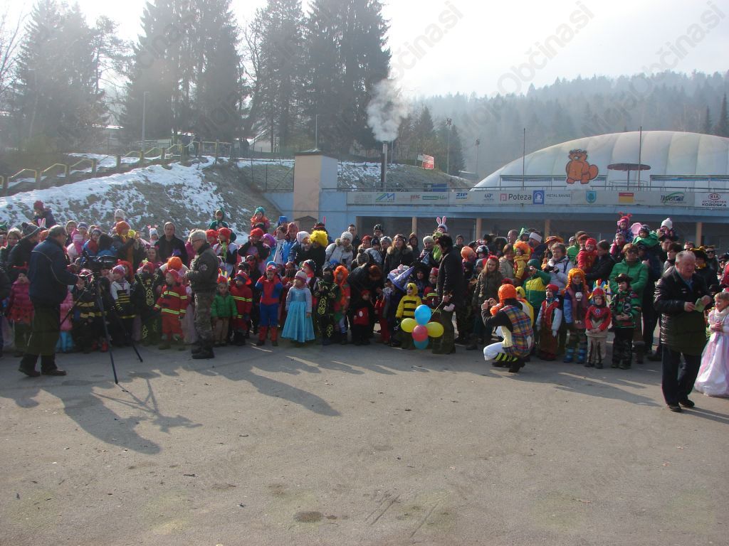 Izvirne otroške maske, ki so na pustni torek preplavile vrtec, so se skupaj s svojimi vzgojiteljicami podale na pustno povorko po bližnji okolici mesta. Ob živahnem prepevanju so pospremili starko Zimo do Mestnega kopališča, kjer se je okoli nje zbrala raznolika množica maškar - vse od princesk, rdečih kapic, čebelic, gusarjev, policistov, levčkov, pikapolonic, klovnov in drugih izvirnih mask. Ob prepevanju pesmic so skupaj z malimi maškarami plesali in odganjali zimo tudi obiskovalci, ki so jim prišli pomagati, da bi s skupnimi močmi v deželo čim prej priklicali pomlad, pri odganjanju zime pa so se otrokom pridružili tudi Zimski kosci.