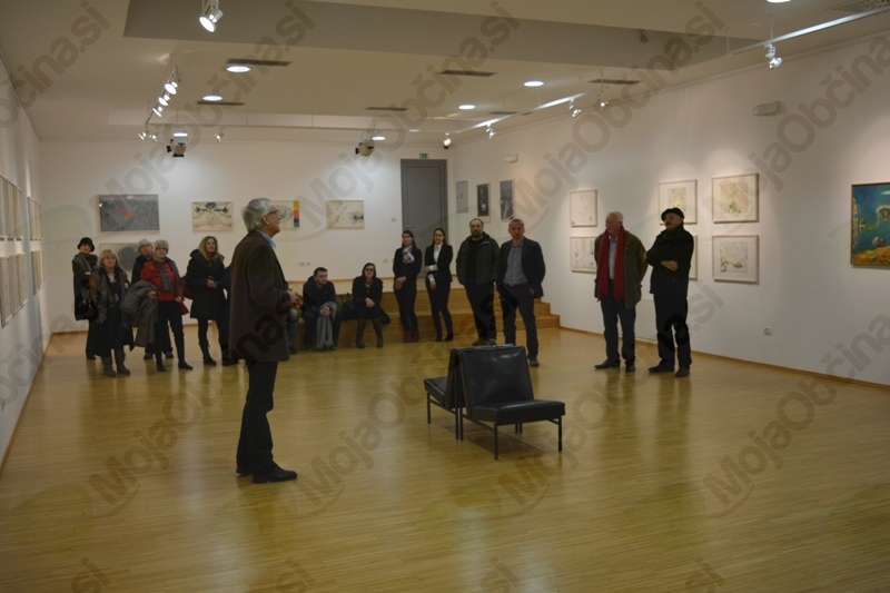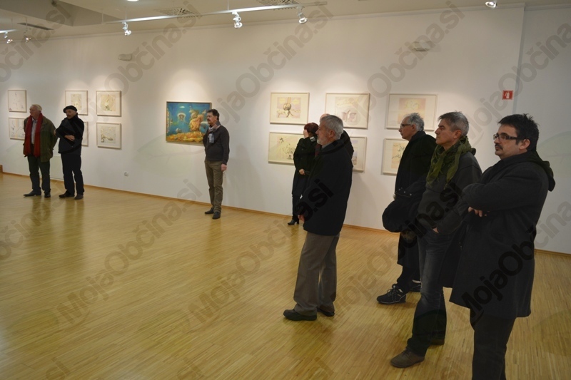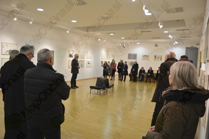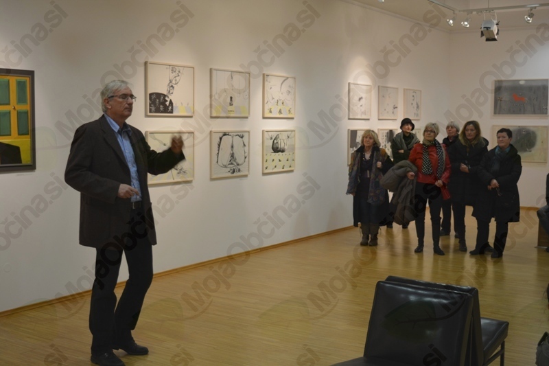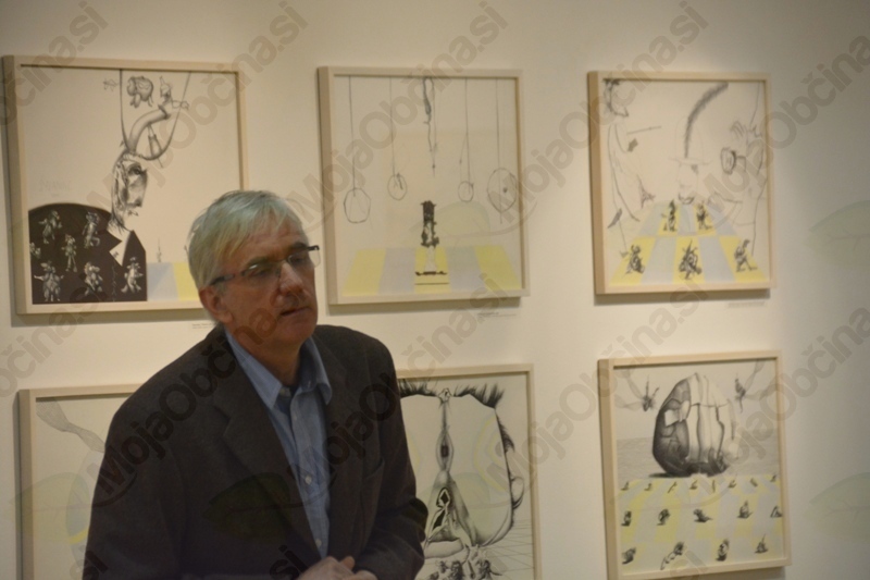 Razstavo del na papirju ter avtorja je na otvoritvi predstavil kustos razstave Marko Košan.
