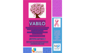 - 7. 3. 2017 ob 12.30 uri – V sejni sobi Zdravstvenega doma Ravne na Koroškem organiziramo strokovno predavanje s praktičnim prikazom samopregledovanja dojk.