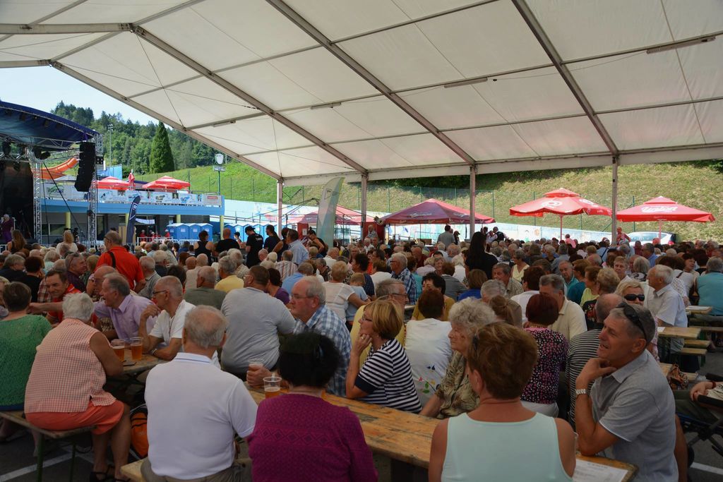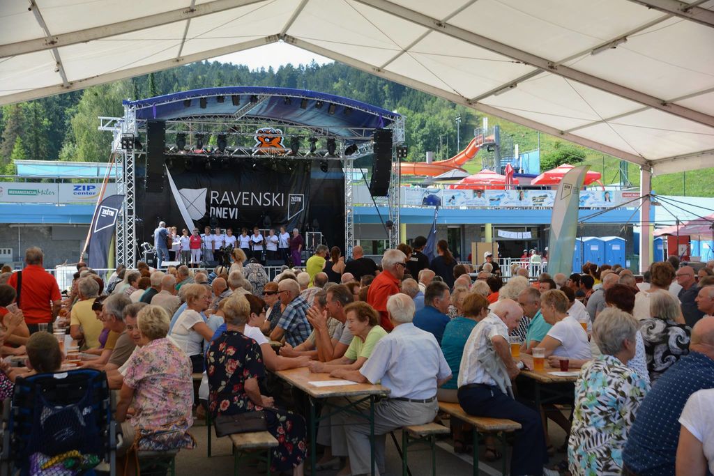 Šotor pri mestnem bazenu, kjer so se konec tedna odvijale prireditve, je bil zadnji dan namenjen dolgoletnemu tradicionalnemu srečanju ravenskega župana dr. Tomaža Rožena z upokojenkami in upokojenci. Letošnje srečanje, že deseto zapovrstjo, je privabilo okoli šesto upokojenk in upokojencev iz občine Ravne na Koroškem.