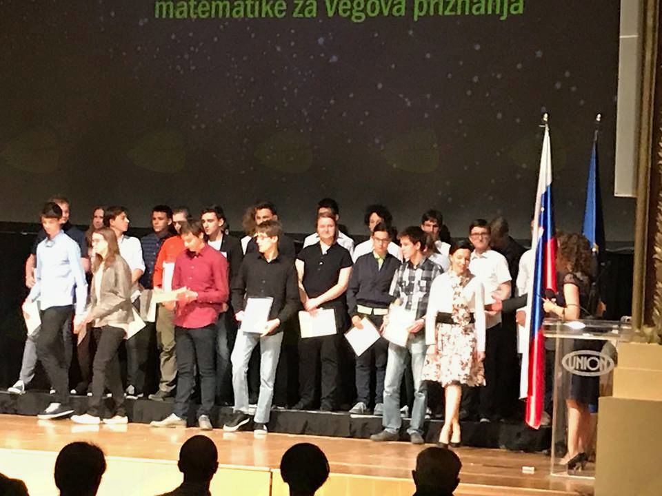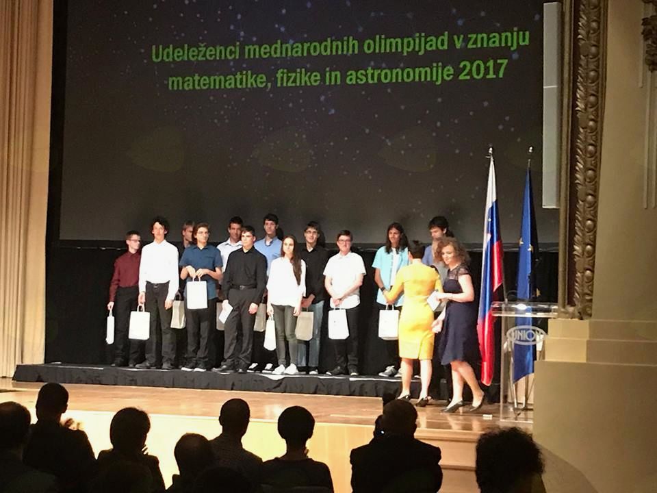 Domen Vreš se je tretjič zapored uvrstil na najbolj prestižno matematično tekmovanje. Nagrado za uvrstitev v šestčlansko slovensko ekipo za mednarodno matematično olimpijado, IMO 2017, mu je tokrat podelila dr. Maja Makovec Brenčič, Ministrica za izobraževanje, znanost in šport.