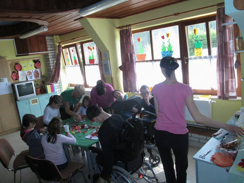 V torek, 11. 4. 2017, in v sredo, 12. 4. 2017, smo v Dnevnem centru na Ravnah v sodelovanju s 1. a in 1. b razredom Osnovne šole Koroških Jeklarjev organizirali velikonočne delavnice.
