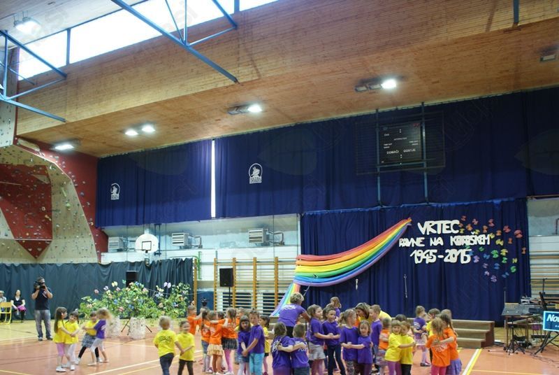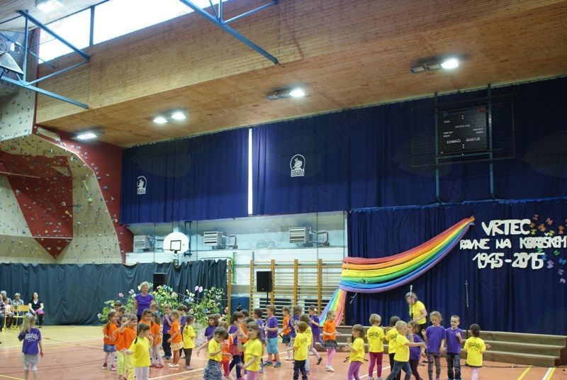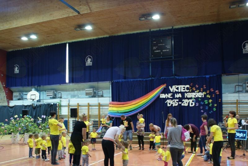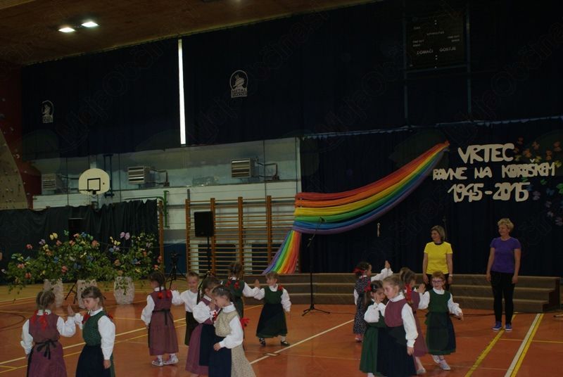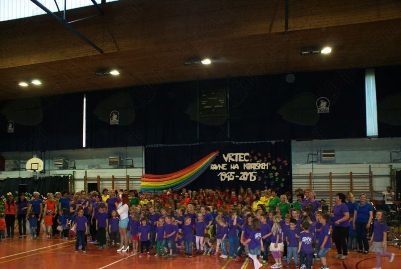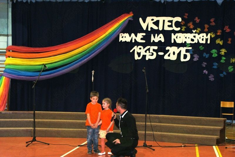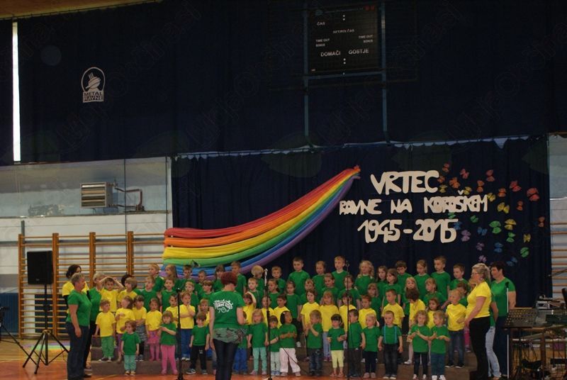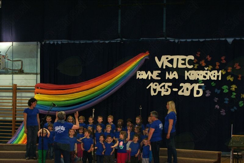 Četrtek, 7. 5. 2015, je bil v športni dvorani pri OŠ Prežihovega Voranca zaznamovan z osrednjo slavnostno prireditvijo Vrtca Ravne, ki letos obeležuje častitljiv jubilej. Kar nekaj prireditev bo zaznamovalo 70 let predšolske vzgoje na Ravnah. Dogodki iz časa otroštva, ko je marsikdo med nami obiskoval katerega izmed Ravenskih vrtcev, vključno z vrtcem Kotlje, in obdobje, ko smo iz copatk in dude prešli na čevlje in pisalo, pa v marsikom zbudi lepe spomine.