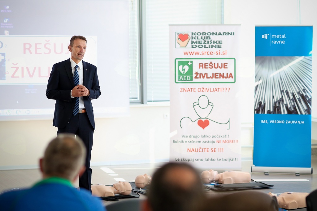 Zato se v projektu ključen poudarek daje na usposabljanje ljudi. Pod vodstvom Petra Kordeža iz Koronarnega kluba Mežiške doline so se uporabe defibrilatorja učili tudi sodelavci SIJ Metala Ravne.