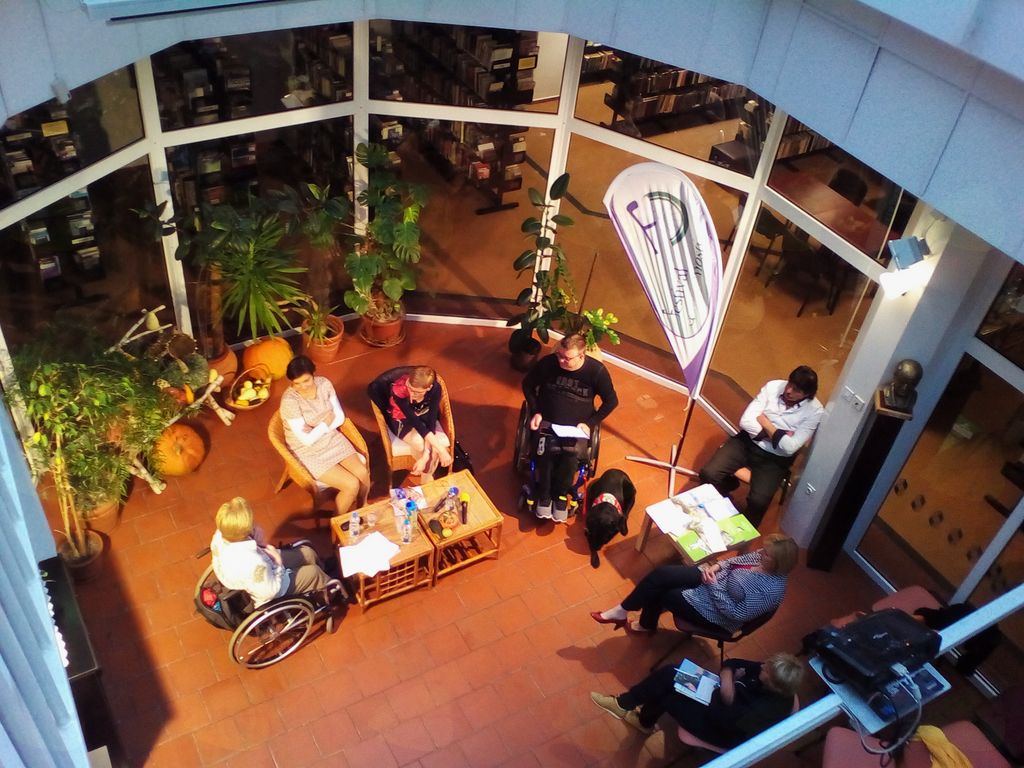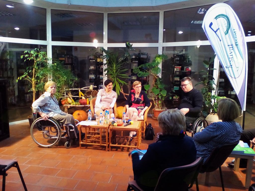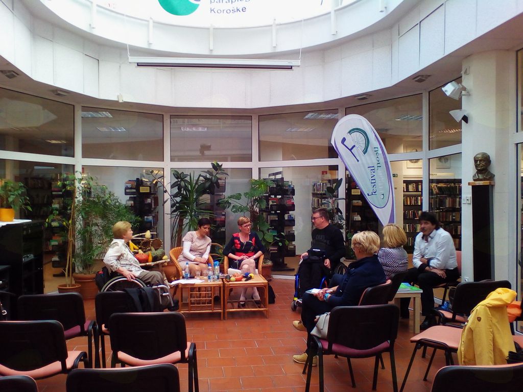 Za zaključek 10. Festivala drugačnosti smo v petek 27.9. v knjižnici K. Meška pripravili Okroglo mizo »Boj za pravice«, na kateri so se predstavile borke za pravice invalidov – ga dr. Jasna Murgel, asist.dr. Simona Gerenčer Pegan in Julijana Kralj – opravičila se je Elena Pečarič. Ga. Julijana Kralj se je zelo podrobno in živopisno predstavila. Seveda je vsem nam privabila nasmešek na lica, ko je pripovedovala zgodbo z pismom maršalu Titu. Je soustanoviteljica in predsednica Društva gibalno oviranih invalidov Slovenije VIZIJA, avtorica knjig »Za lepše in prijaznejše življenje s paraplegijo in tetraplegijo« in »Čar stekla«, raziskave »Raziskava nasilja nad gibalno oviranimi ženskami«, avtorica posebnega socialnega programa »Nasilje nad gibalno oviranimi osebami« ter pobudnica ustanovitve varnega stanovanja »Hiša zaupanja«. Sedaj poslanka v državnem zboru je ga. dr. Jasna Murgel; sicer pa pravnica in sodnica; mama dvojčkov s posebnimi potrebami. Z namenom olajšati iskanje potrebnih informacij je napisala priročnik Vodnik po pravicah otrok s posebnimi potrebami in je bila predlagateljica Zakona o celostni zgodnji obravnavi predšolskih otrok s posebnimi potrebami. Borka »iz plemenitosti« je , asist.dr. Simona Gerenčer Pegan, ki je doktorirala na Fakulteti za socialno delo, je tolmačica slovenskega znakovnega jezika, tolmačica za gluhoslepe, supervizorka na področju socialnega varstva, članica Sveta za slovenski znakovni jezik, asistentka na Fakulteti za socialno delo, soustanoviteljica, sekretarka in strokovna vodja Društva gluhoslepih Slovenije DLAN, avtorica znanstvenih monografij Osebe z gluhoslepoto in načini sporazumevanja ter Ljudje z gluhoslepoto v Sloveniji. Njeno srčno predanost, ki presega meje službene dolžnosti smo začutili skozi opis stisk ljudi z gluhoslepoto.