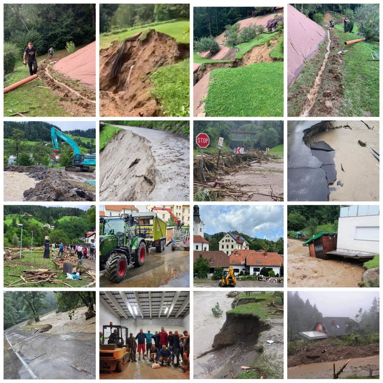 Gibanje na prizadetih omočjih in razmočenem terenu je NEVARNO, upoštevajte označbe pristojnih na terenu. Če ni nujno, se ne odpravljajte od doma! V primeru življenjske ogroženosti pokličite na številko 112.