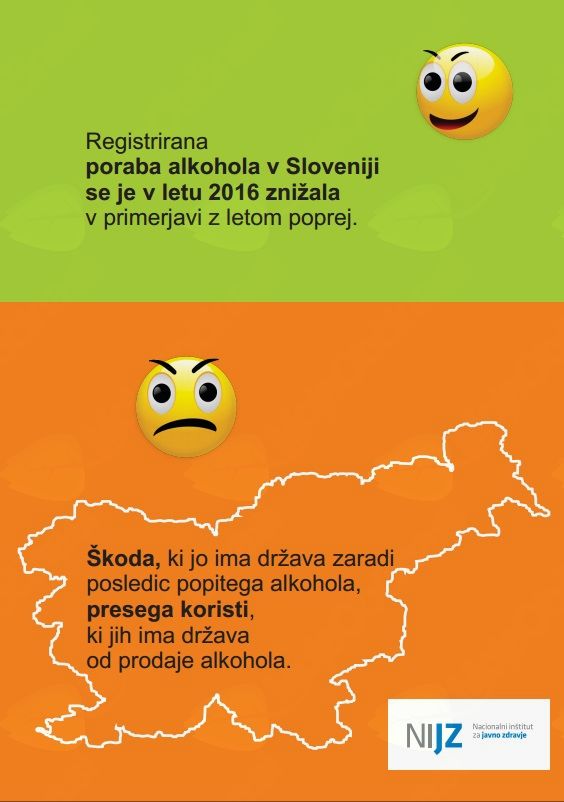 V Sloveniji je registrirana poraba alkohola visoka, skupaj s problematičnimi pivskimi navadami to pripomore k višjemu zdravstvenemu bremenu. Slovenija je po registrirani porabi alkohola že desetletja nad mednarodnim povprečjem EU in Evropske regije Svetovne zdravstvene organizacije. Vzpodbudno je, da se je v letu 2016 v Sloveniji registrirana poraba alkohola v primerjavi z letom 2015 znižala, še vedno pa ostaja problematična z javnozdravstvenega vidika.